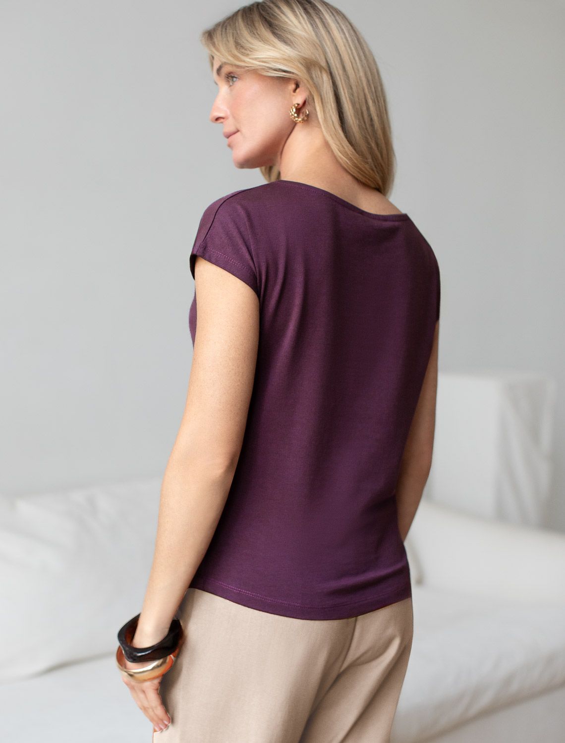 Футболка цвета бургунди идеально подходит для вечеринки и создания яркого образа. Оригинальный блестящий принт из устойчивой фольги в виде новогоднего символа змеи золотистого цвета придает изделию шикарный вид, который привлечет внимание на любом мероприятии. Модель с вырезом лодочка и цельнокроеным коротким рукавом обеспечивает свободу движений и комфорт в носке. Такой фасон изделия подходит на большие размеры, гармонично сидит на фигуре и помогает создать легкий акцент на достоинствах. Аккуратный вырез лодочка красиво подчеркивает шею и делает образ элегантным, сохраняя актуальность для разных случаев — от рабочих встреч до вечерних прогулок и праздничных мероприятий.