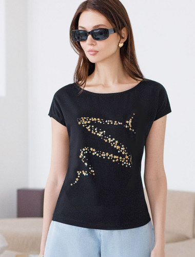 Эта нарядная футболка подходит для создания образа на каждый день и идеально подойдет на выход. Модель не мнется, что делает ее практичным вариантом для активных женщин, которые ценят стиль и удобство.