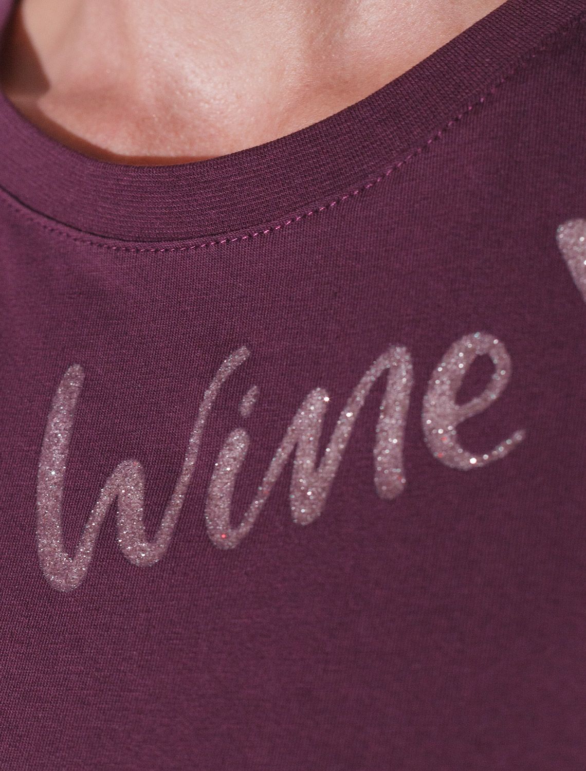 Нарядная футболка с блестящим принтом D49.135 бургунди_wine_not