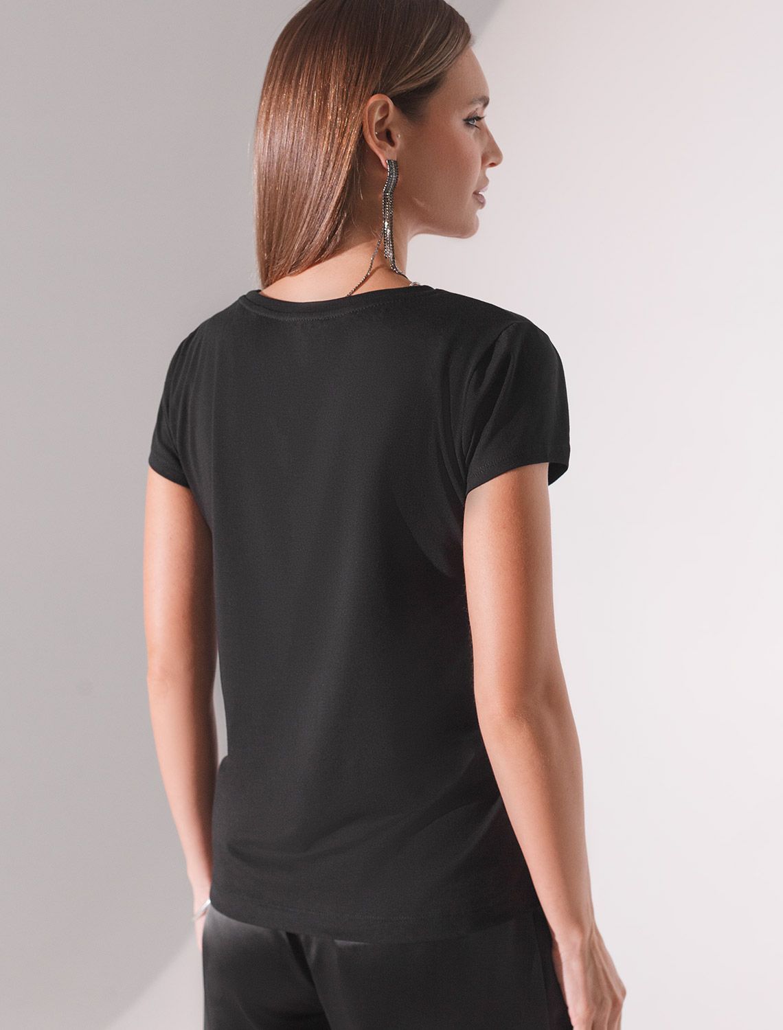 Нарядная футболка с блестящим принтом D49.135 черный_partyloading