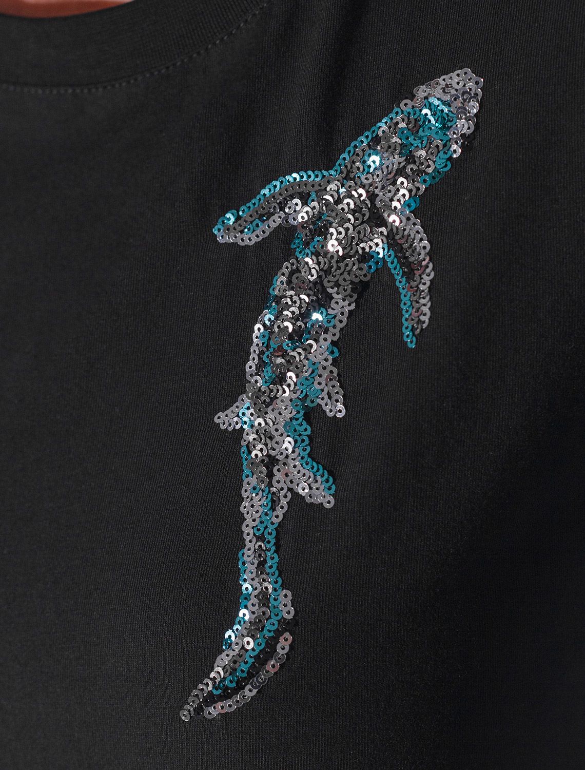 Нарядная футболка с принтом пайетками D49.135 черный_рыба