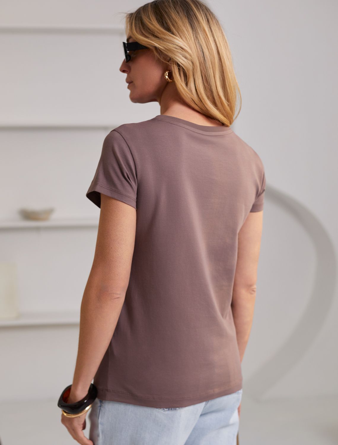 Футболка кофейного цвета идеально подходит для вечеринки и создания яркого образа. Оригинальный принт из пайеток придает изделию шикарный вид, который привлечет внимание на любом мероприятии. Модель с круглым вырезом и классическим коротким рукавом обеспечивает свободу движений и комфорт в носке. Такой фасон изделия подходит на большие размеры, гармонично сидит на фигуре и помогает создать легкий акцент на достоинствах. Аккуратный круглый вырез красиво подчеркивает шею и делает образ элегантным, сохраняя актуальность для разных случаев — от рабочих встреч до вечерних прогулок и праздничных мероприятий.
