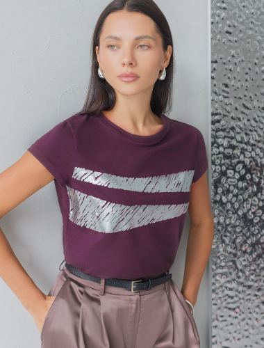 Эта нарядная футболка подходит для создания образа на каждый день и идеально подойдет на выход. Модель не мнется, что делает ее практичным вариантом для активных женщин, которые ценят стиль и удобство.