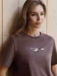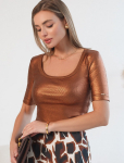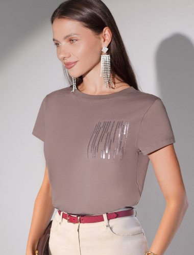 Нарядная футболка с блестящим принтом фольгой D49.135 кофейный_things