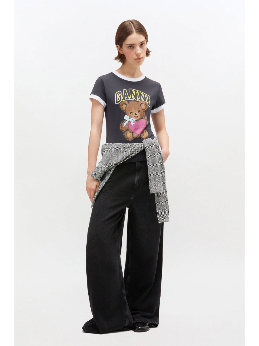 Графический принт с изображением плюшевого медведя.