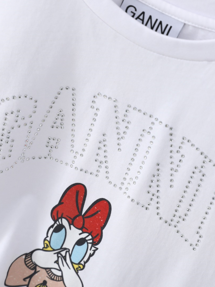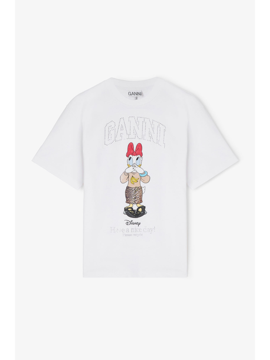 Эта футболка G*NNI x D*sney имеет круглый вырез, короткие рукава и принт Дейзи Дак, выполненный в винтажном стиле.