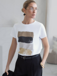 Футболка прямого кроя выполнена из 100% хлопка. Базовая модель дополнена лаконичным авторским принтом. Легко впишется в повседневный гардероб. Изделие хорошо держит форму и обеспечивает комфортный микроклимат в течение дня.