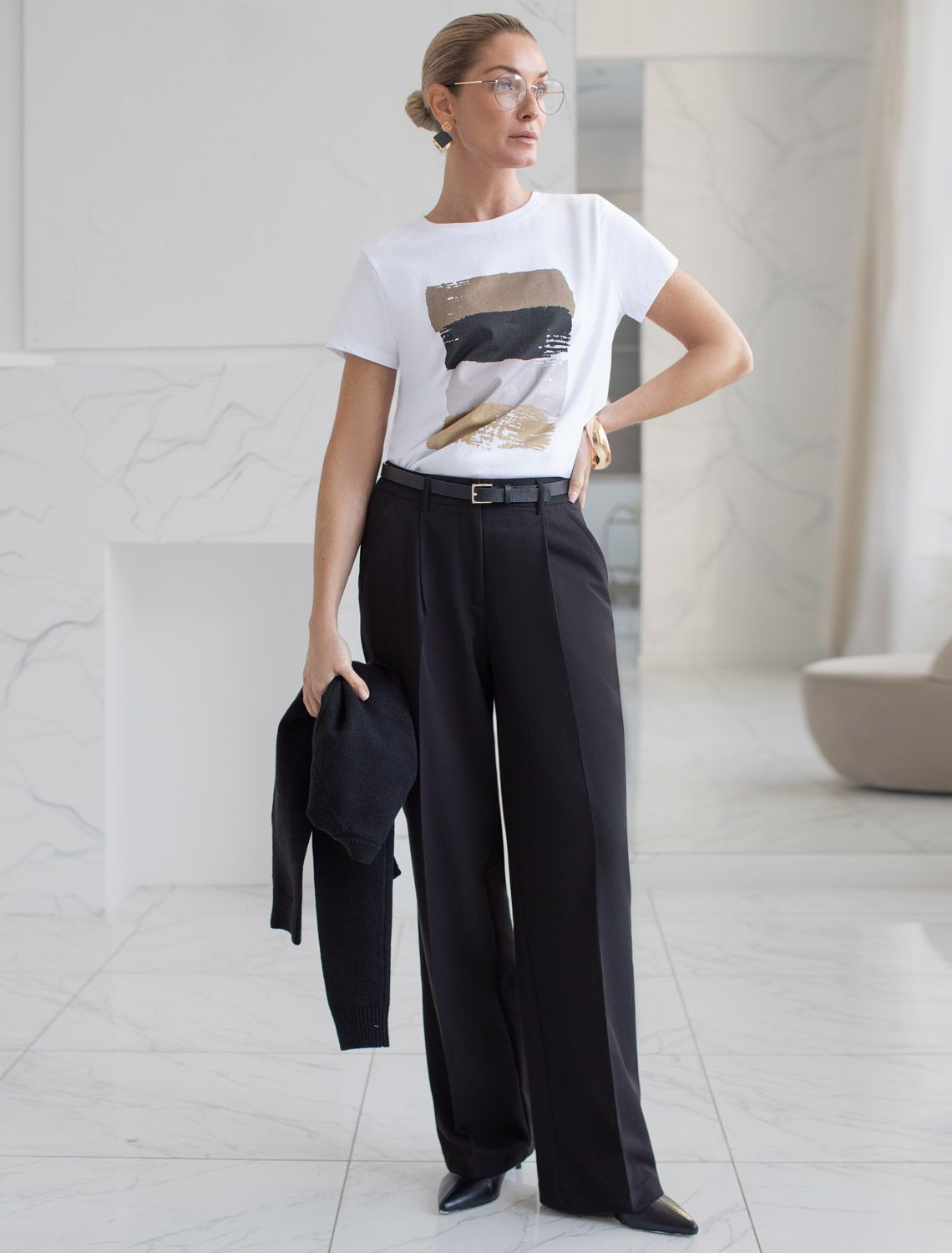 Футболка прямого кроя выполнена из 100% хлопка. Базовая модель дополнена лаконичным авторским принтом. Легко впишется в повседневный гардероб. Изделие хорошо держит форму и обеспечивает комфортный микроклимат в течение дня.