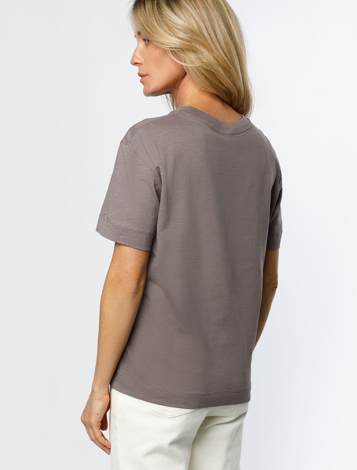 Перевод принта: Inspiring being - Вдохновляющая жизнь.Футболка выполнена из фактурного полотна из 100% хлопка. Модель с лаконичным авторским принтом легко впишется в любой весенне-летний гардероб. Ткань имеет характерный рисунок черточки за счет сочетания разных волокон хлопка 140-150 г. Хорошо держит форму и поддерживает комфортный микроклимат в течении дня. кофейный_inspiring being