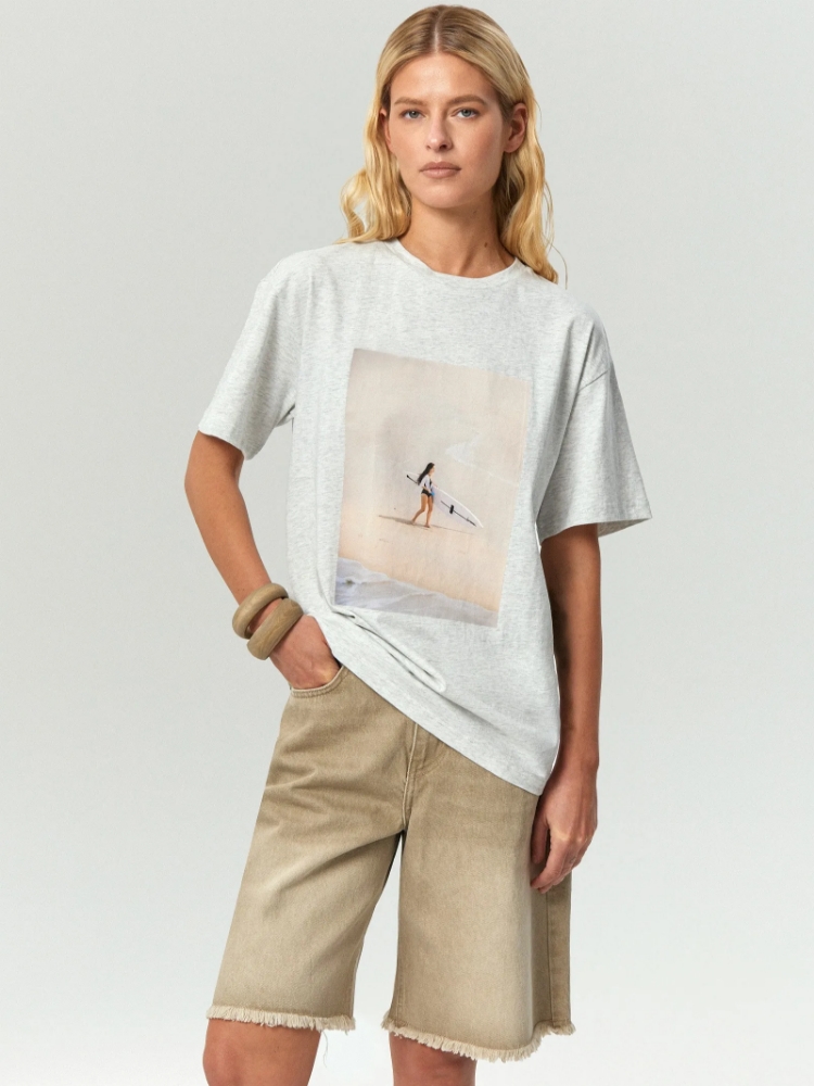 Футболка с настроением отпуска на море станет любимой вещью в гардеробе. Сделана из приятного к телу натурального хлопка. Цветовая гамма принта мечтательно-мягкая, как будто на фото наложен фильтр. Такая вещь в гардеробе вдохновляет немного помечтать и расслабиться. Отличный вариант для выходных в городе, отпуска и даже рабочих будней — если уравновесить деловым жакетом и сдержанным денимом