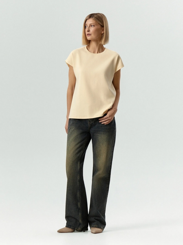 Базовая футболка в трендовом цвете сливочного масла для концептуальных и простых образов. Модель без рукавов со спущенным плечом удобно носить под жакет: ничего не собирается складками и не мешает. Выполнена из хлопка с небольшим добавлением эластана для лучшей посадки