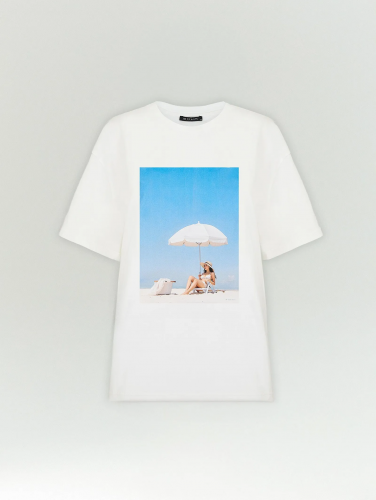 Футболка с настроением отпуска на море станет любимой вещью в гардеробе. Сделана из приятного к телу натурального хлопка. Цветовая гамма принта мечтательно-мягкая, как будто на фото наложен фильтр. Такая вещь в гардеробе вдохновляет немного помечтать и расслабиться. Отличный вариант для выходных в городе, отпуска и даже рабочих будней — если уравновесить деловым жакетом и сдержанным денимом.