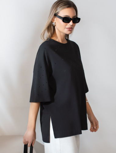 Футболка из плотного трикотажа с плетением риб 1*1 D49.126 белый-черный