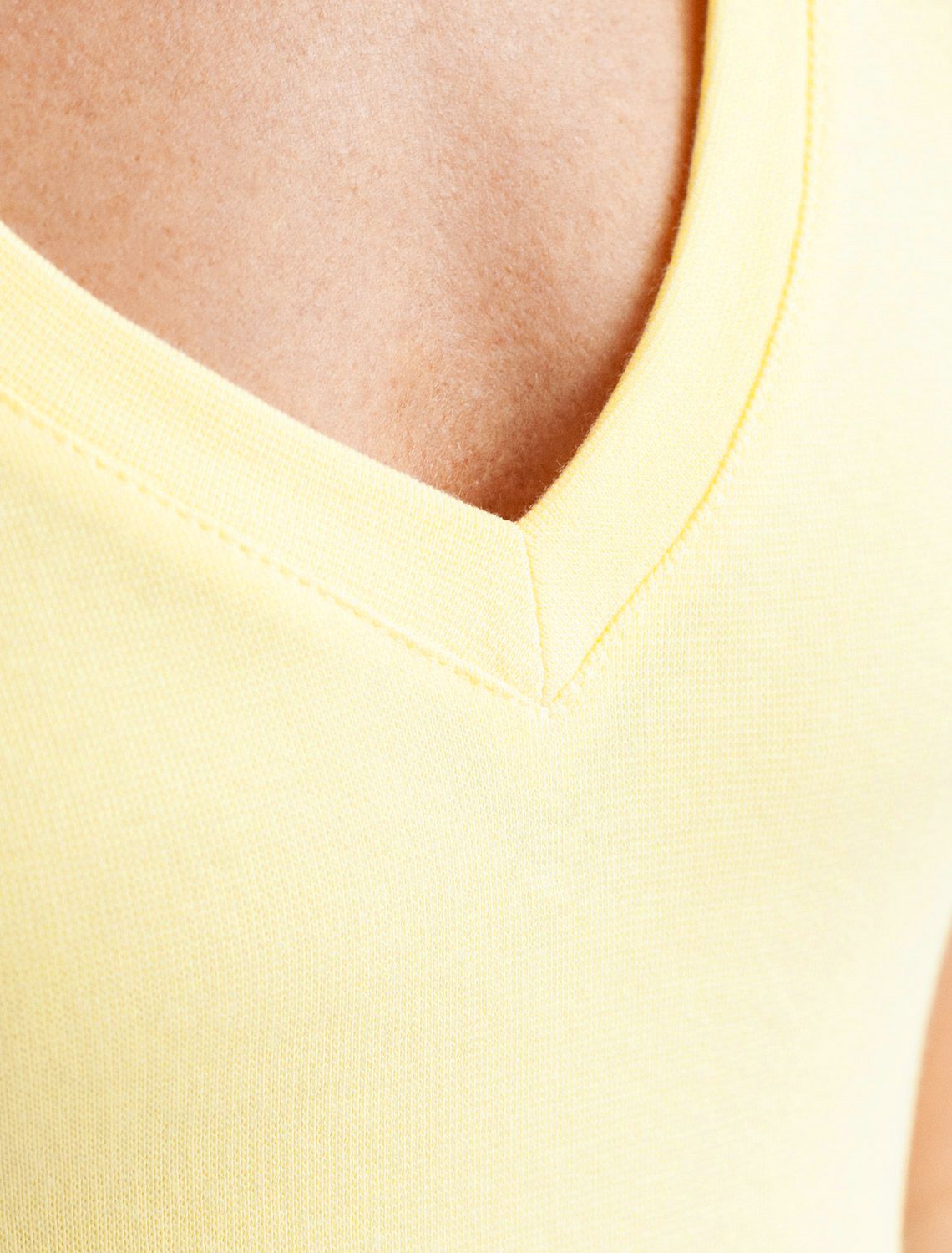 Облегающая футболка с V-образным вырезом в цвете "шардоне" создаст утонченный образ. Идеальная базовая модель для вашего гардероба! Глубокий V-образный вырез подчеркивает линию шеи и зрительно удлиняет силуэт. Футболка выполнена из хлопка с добавлением эластана, которая мягко облегает контуры тела, подчеркивая достоинства фигуры. Универсальный вариант для создания стильных повседневных образов.