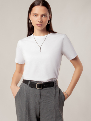 Футболка из плотного трикотажа в рубчик с V-образным вырезом