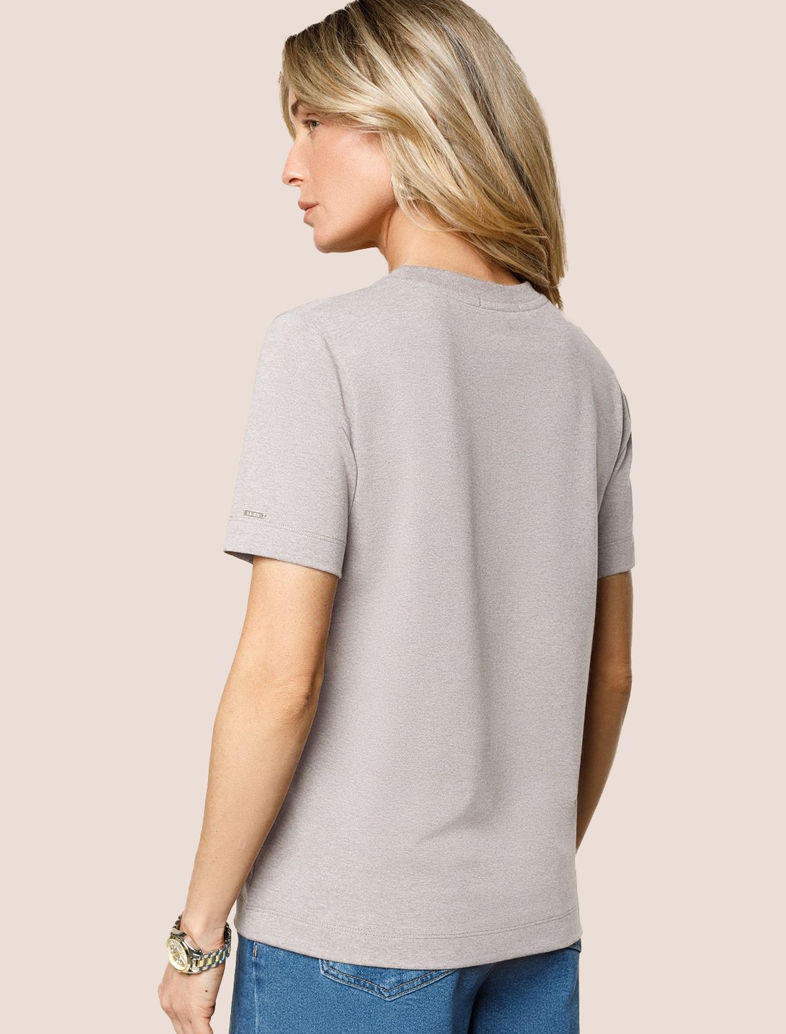 Базовая однотонная футболка из премиального хлопка. Горловина выполнена из рибаны в тон изделия, Добавление эластана в состав изделия способствует формоустойчивости. Самое высокое качество хлопковых волокон обеспечивает комфорт в любое время года. Идеально держит форму и сохраняет внешний вид в течение долговременного использования. Универсальная базовая вещь для ваших стилистических решений. Изделие дополнено металлическим логотипом бренда на рукаве. кофейный меланж