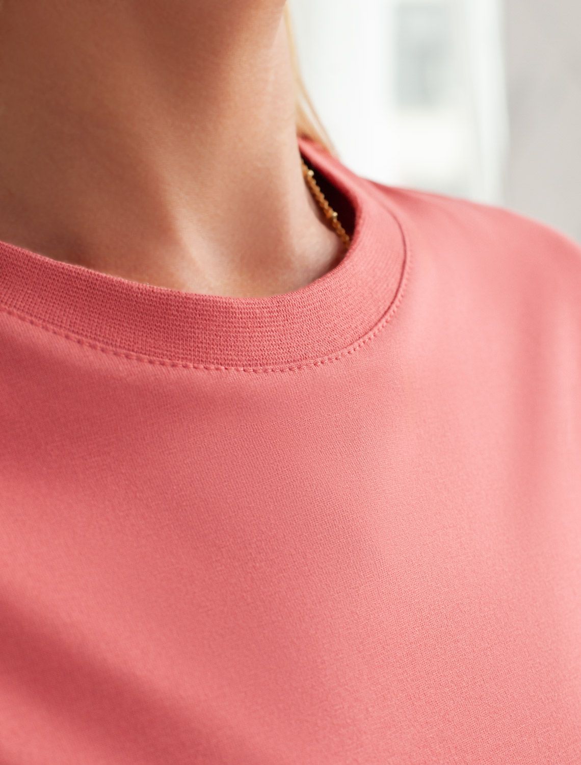 Базовая однотонная футболка из премиального хлопка. Горловина выполнена из рибаны в тон изделия, Добавление эластана в состав изделия способствует формоустойчивости. Самое высокое качество хлопковых волокон обеспечивает комфорт в любое время года. Идеально держит форму и сохраняет внешний вид в течение долговременного использования. Универсальная базовая вещь для ваших стилистических решений. Изделие дополнено металлическим логотипом бренда на рукаве. терракота