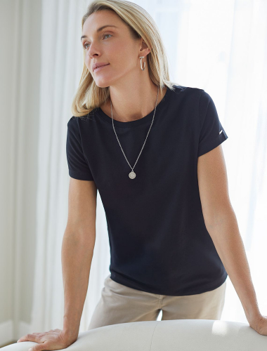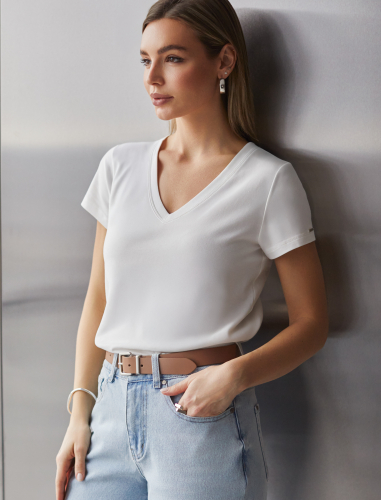 Футболка выполнена из премиального хлопка. Наличие эластана в составе способствует комфорту и формоустойчивости, помогая сохранить изделие в течении долгого времени в идеальном состоянии. Безупречная база в любом сезоне.
