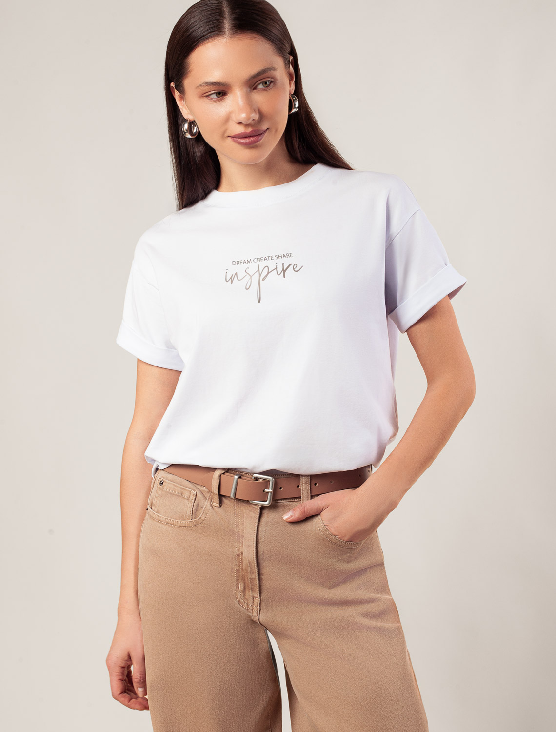 Перевод принта: Dream, create, share, inspire — мечтай, создавай, делись, вдохновляй.