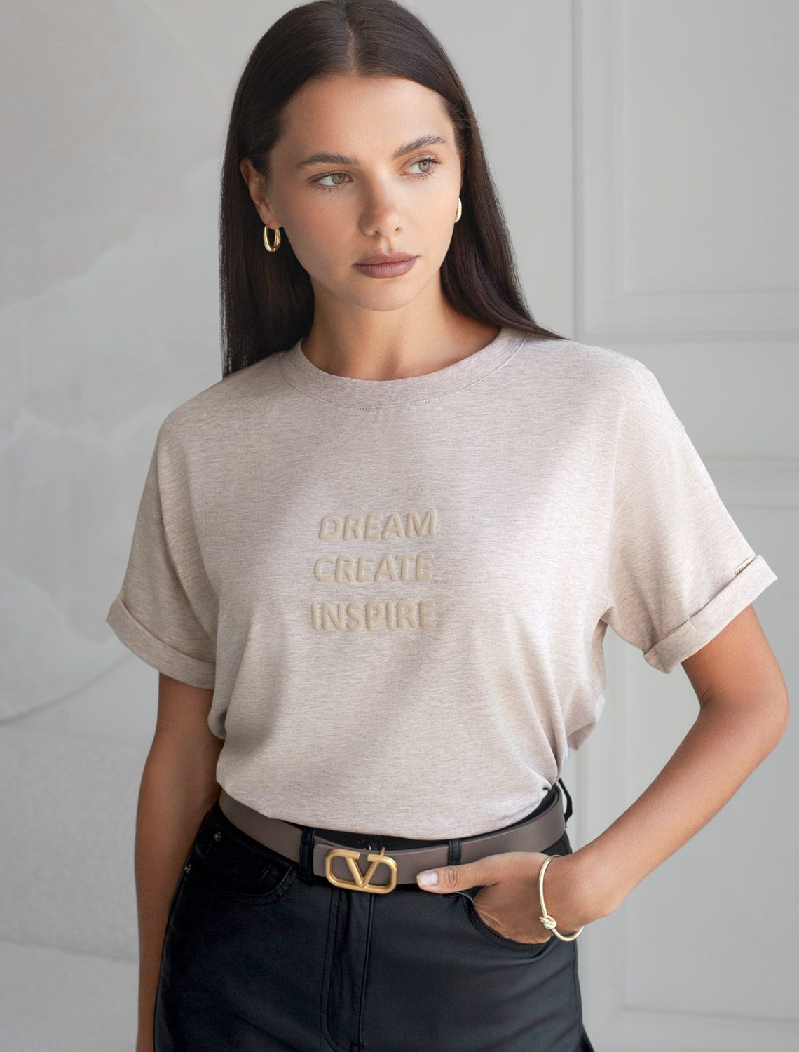 Состав: 92%Хлопок 8%ПУ Плотность:..показать 170 Г/м2Перевод принта: Dream, create, inspire — мечтай, создавай, вдохновляй