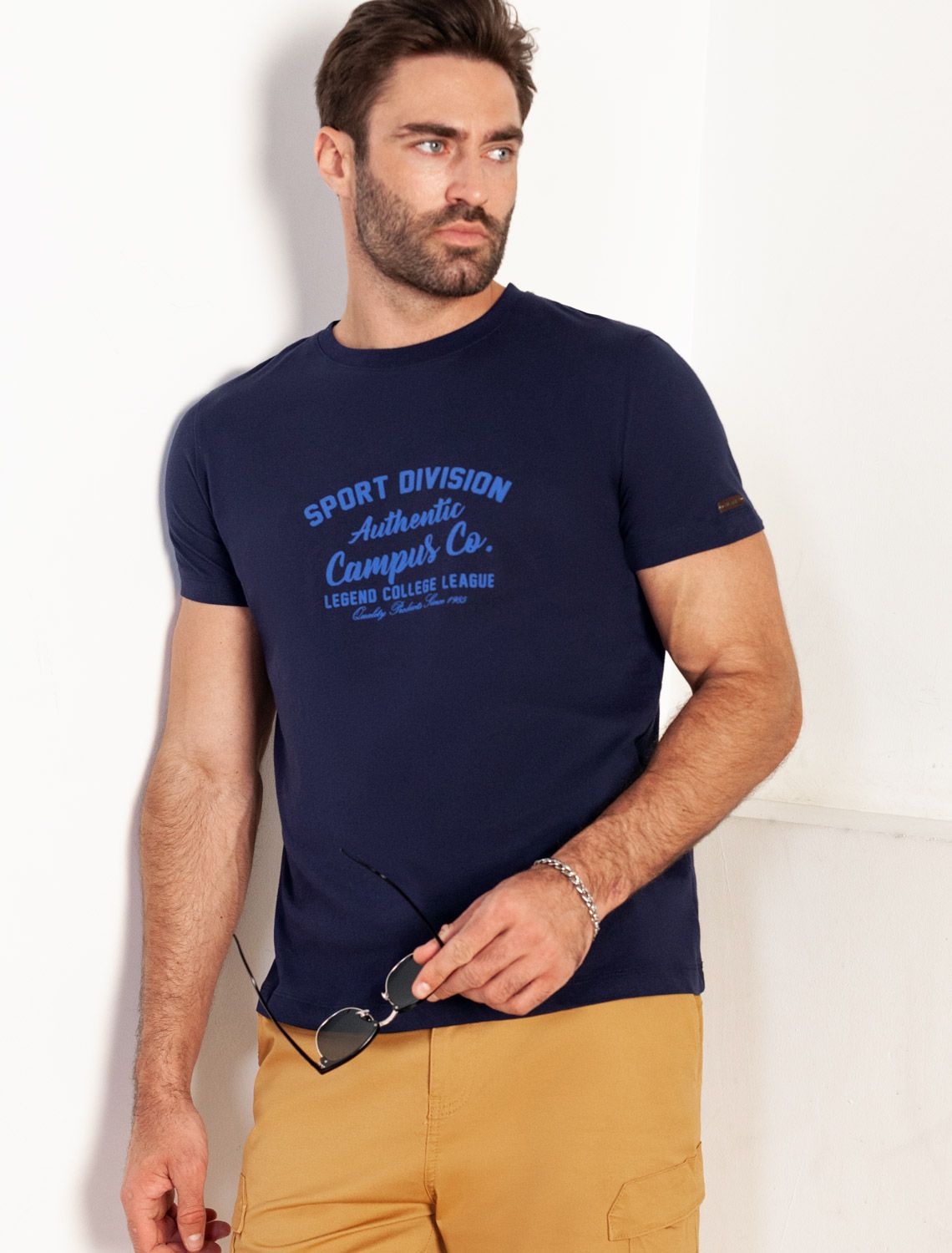 Футболка выполнена из премиального хлопка. Авторский лаконичный принт нанесен водными красками с устойчивым покрытием. Наличие эластана в составе изделия гарантирует непревзойдённый комфорт. Изделие сохранит первоначальный внешний вид в течении долгого времени. Нашивка с логотипом бренда из эко-кожи. т.синий__sport division