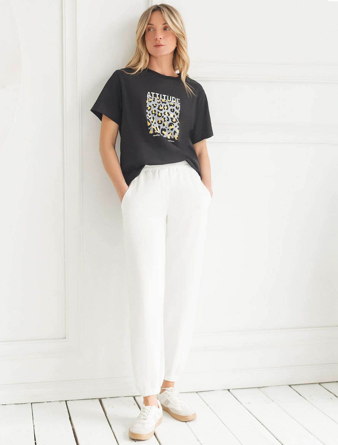 Перевод принта: Attitude makes a big difference - от отношения зависит многое. Футболка выполнена из премиального хлопка. Авторский принт нанесен фактурными красками с устойчивым покрытием. Наличие эластана в составе гарантирует комфорт и формоустойчивость. Изделие дополнено фирменным металлическим логотипом бренда.