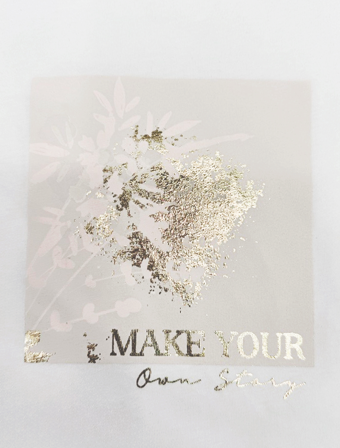 Футболка выполнена из премиального хлопка. Авторский принт нанесен фактурными красками и фольгой с устойчивым покрытием. Наличие эластана в составе гарантирует комфорт и формоустойчивость. Принт станет дополнением не только в повседневных сочетаниях, но и отлично подойдет к вечерним образам. Изделие дополнено фирменным металлическим логотипом бренда.