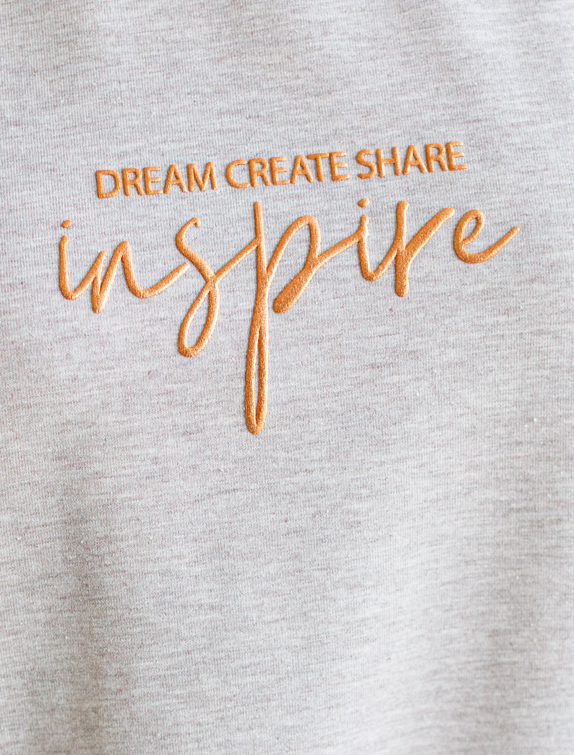 Перевод принта: Dream, create, share, inspire — мечтай, создавай, делись, вдохновляй.