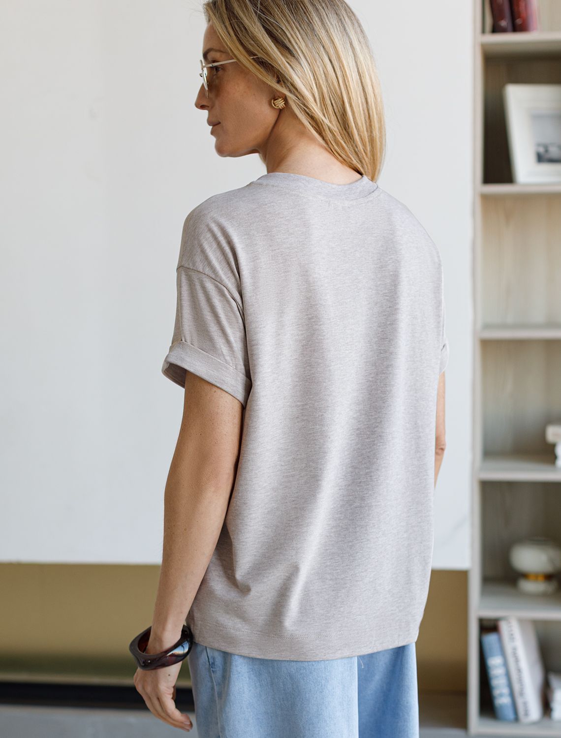 Футболка из премиального хлопка с авторским принтом D49.117 кофейный меланж_inspire