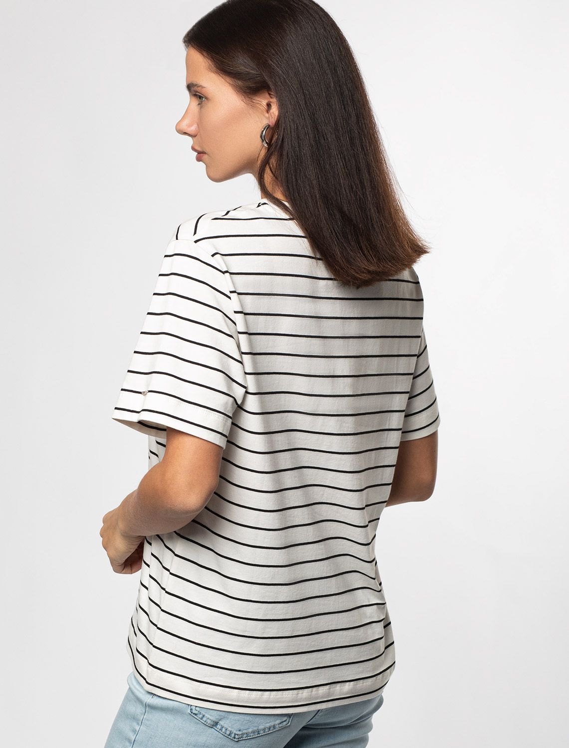 Футболка из премиального хлопка с эластаном D49.983 белый-черный полоса