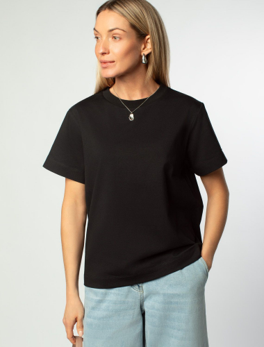 Футболка выполнена из премиального хлопка. Базовая модель, которая хорошо будет сочетаться в гардеробе с любым низом и любым дополнительным верхом вне зависимости сезона. Эластан в составе способствует формоустойчивости и меньшей сминаемости. Изделие украшено логотипом бренда.