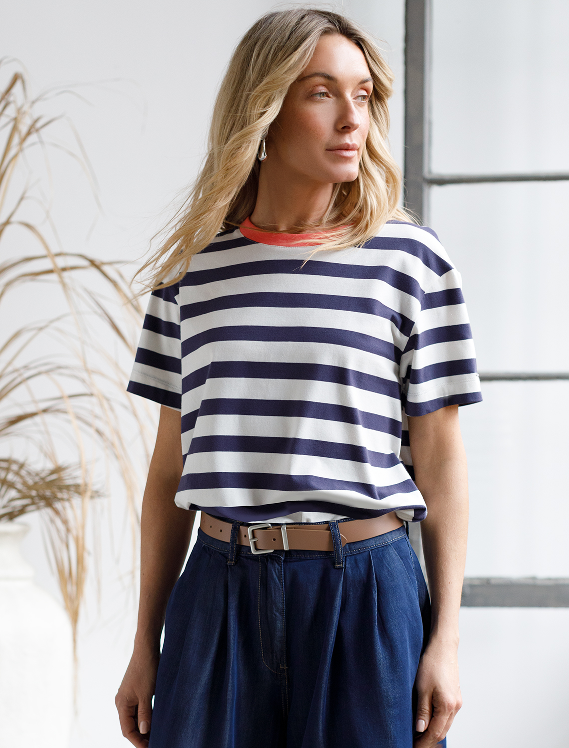 Базовая футболка в бело-синюю полоску выполнена из премиального дышащего хлопка с добавлением эластана. Эта футболка идеально подходит для создания стильного образа. Классический вариант на лето или как нижний слой в прохладное время года.Футболка отлично держит форму и не теряет привлекательности даже после многочисленных стирок. Базовая полосатая футболка с ярким акцентом легко комбинируется с различными предметами гардероба и станет неотъемлемой частью вашего образа. Футболка из натурального хлопка идеально подойдет для создания стильных и молодежных образов. Модная футболка в полоску – это возможность выразить себя и подчеркнуть свою уникальность.