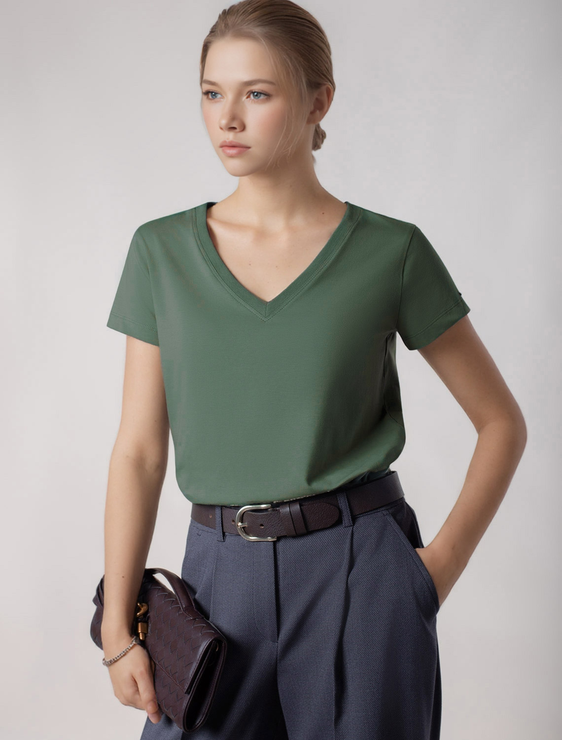 Футболка из премиального хлопка с V-образным вырезом