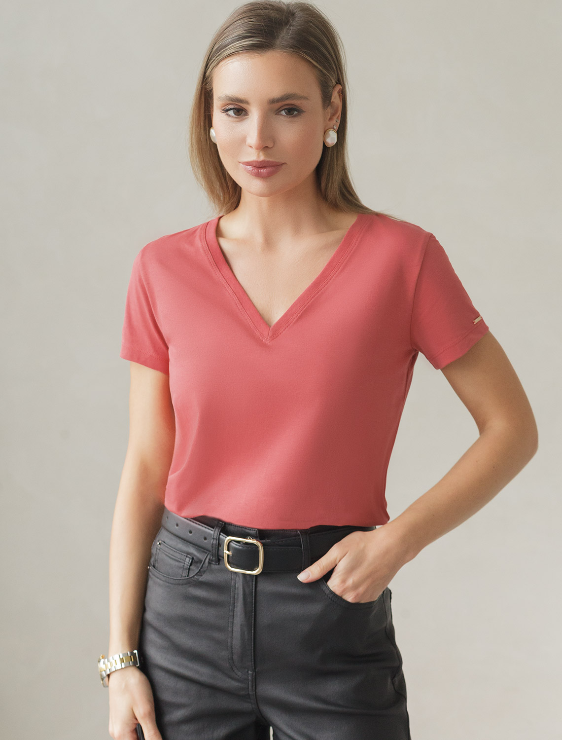 Футболка из премиального хлопка с V-образным вырезом