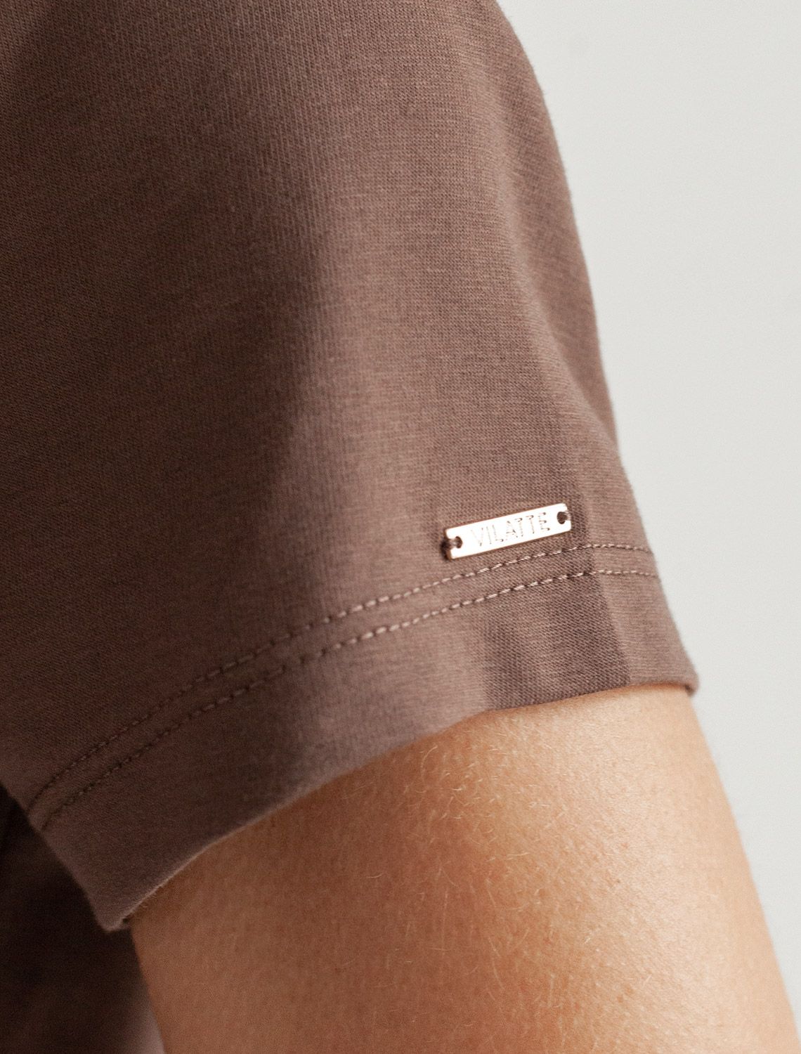 Футболка из премиального хлопка с V-образным вырезом D49.109 темный кофе