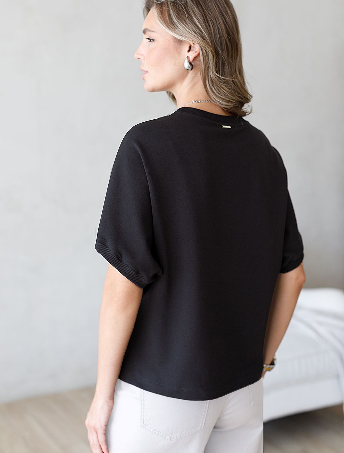 Футболка с рукавами регланами выполнена из эластичного футера двухнитки. Свободная модель со спущенной линией плеча легко поможет составить образы в расслабленном стиле. Сочетается в костюме с брюками D44.135, D44.136 и юбкой D46.034. Наличие эластана в составе изделия гарантирует абсолютный комфорт и формоустойчивость.