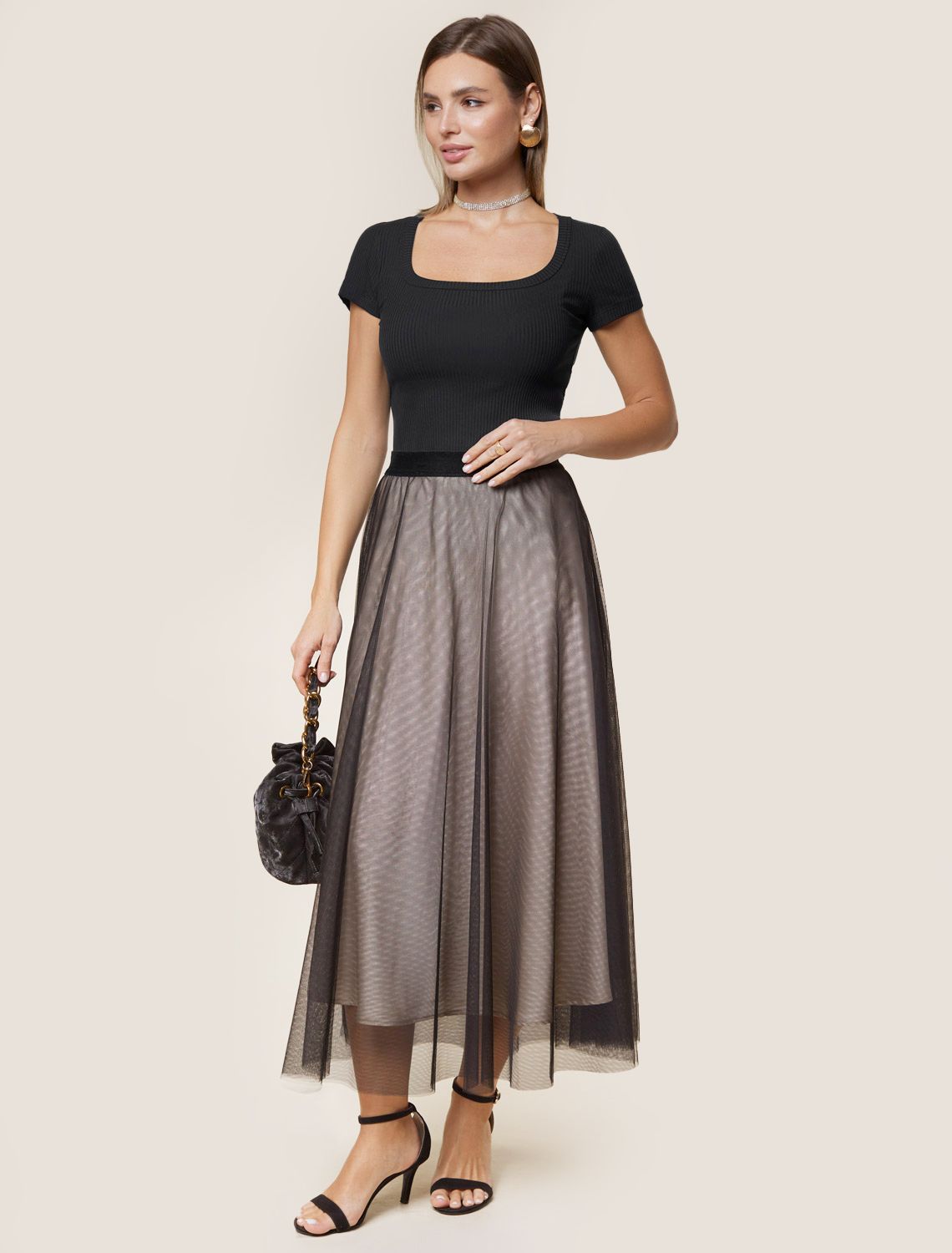 Футболка выполнена из трикотажа в широкий рубчик. Приятная к телу хлопковая ткань с гладкой трикотажной фактурой. Вырез каре подчеркивает изящество фигуры с акцентом на декольте и поддерживает силуэт. Лучшее решение для комплектов с акцентом на талию с объемными низами – палаццо, кюлотами или пышными юбками. Изделие украшено фирменным логотипом бренда.