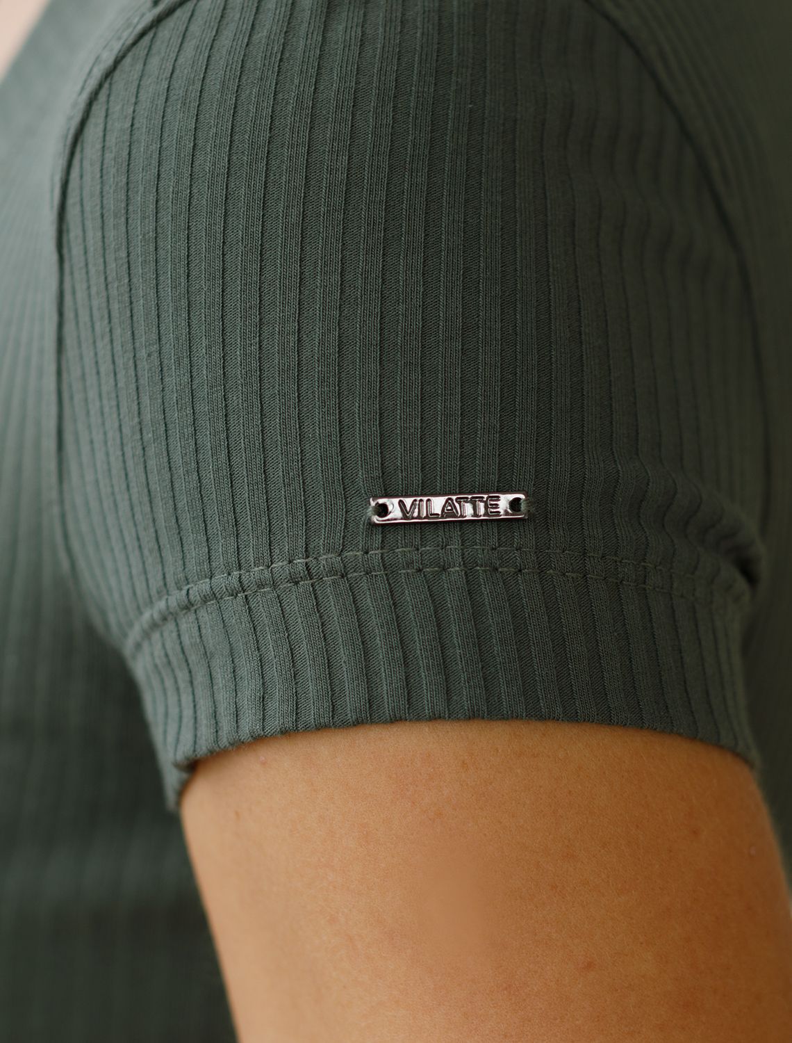 Футболка из трикотажа в широкий рубчик D49.065 т.оливковый