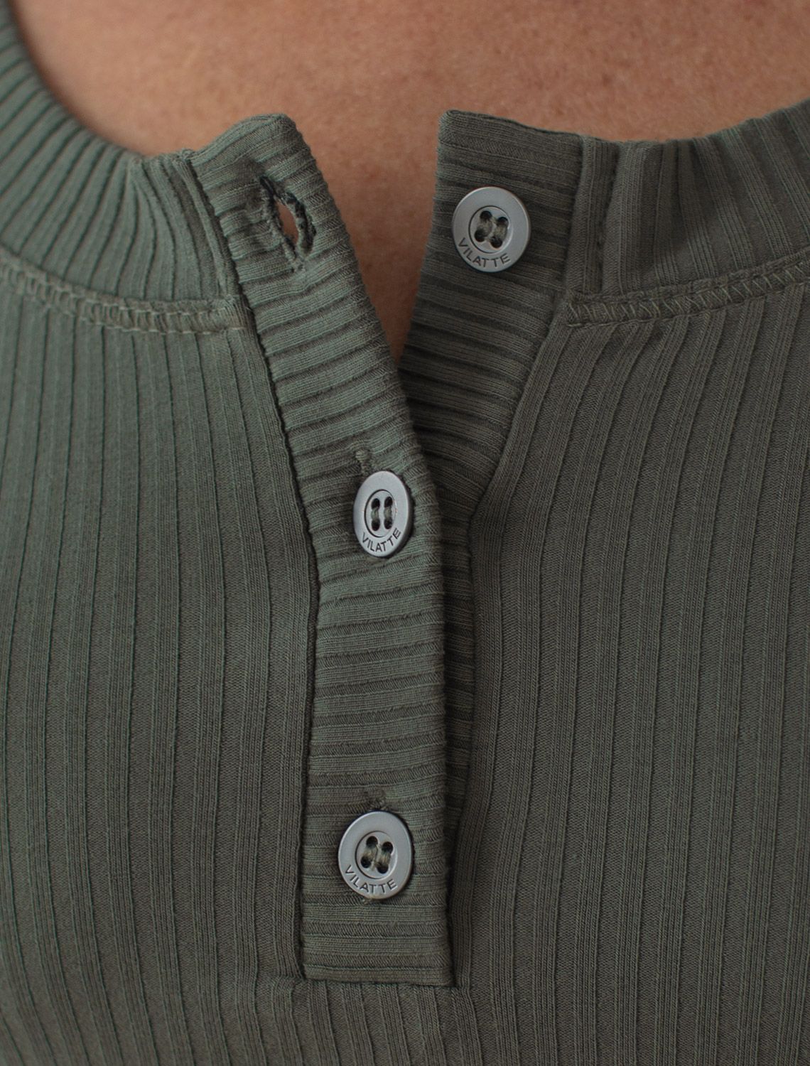 Футболка выполнена из трикотажа в широкий рубчик. Модель с квадратным вырезом дополнена декоративными пуговицами. Эластичный хлопковый трикотаж сидит по фигуре, не сковывает движений и очень комфортный в носке. Фактура вертикальных полос визуально стройнит и вытягивает силуэт. Базовое изделие хорошо впишется в любой гардероб. Идеально подходит для многослойных образов.