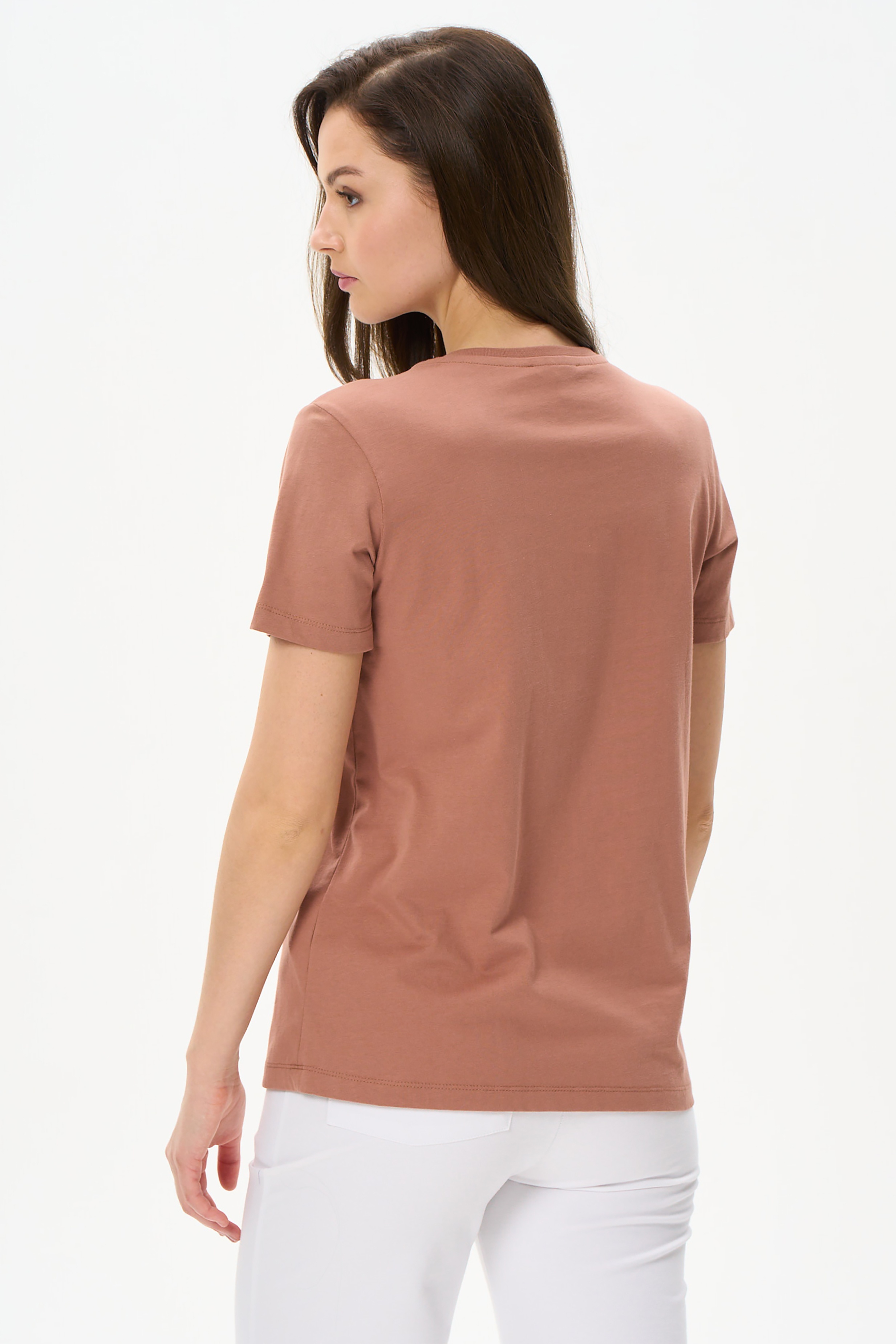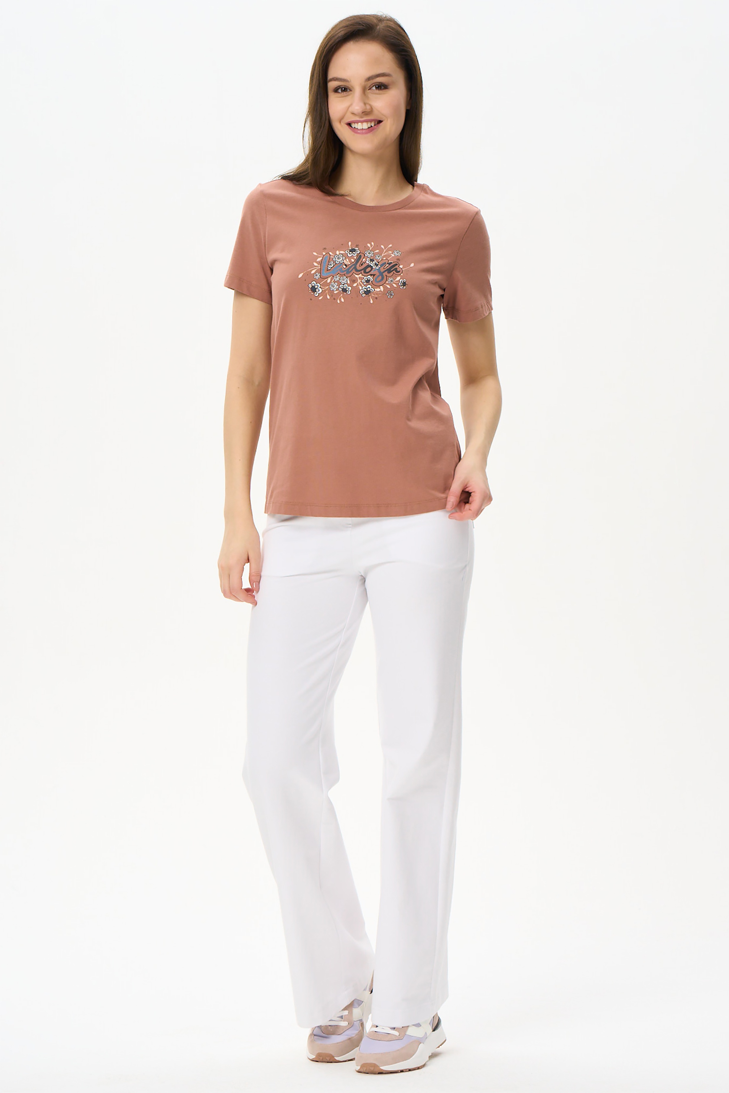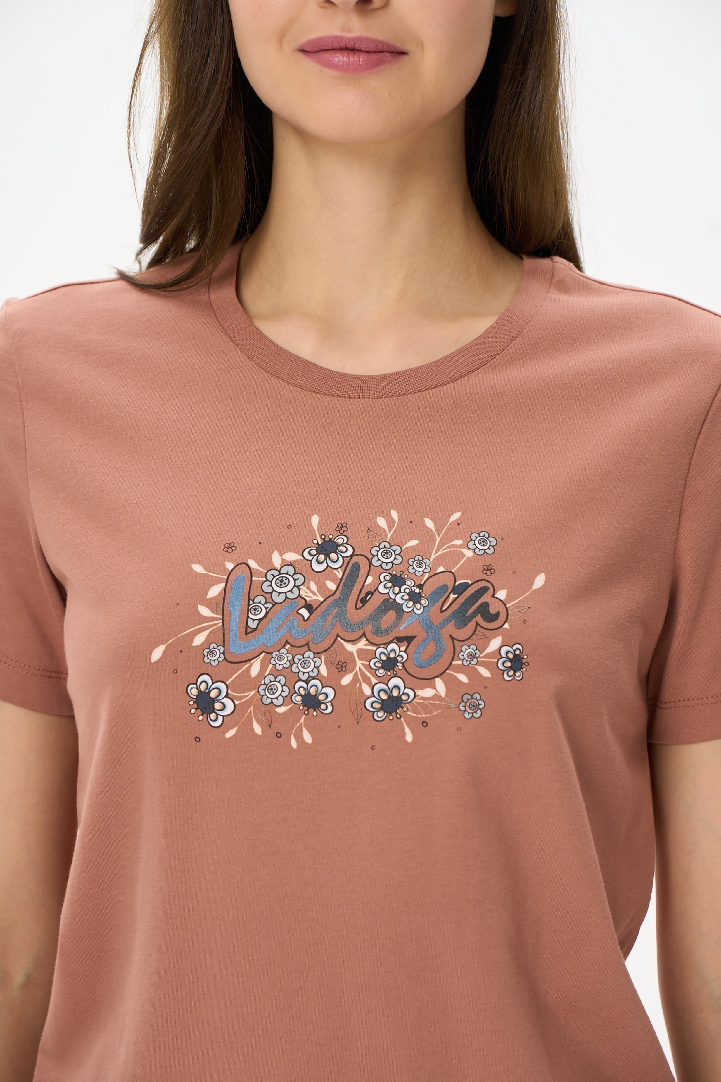 100% хлопок Футболка с принтом выполнена из хлопкового полотна качества пенье. Округлая горловина окантована хлопковым полотном рибана. Короткий рукав. Рост модели на фото 170