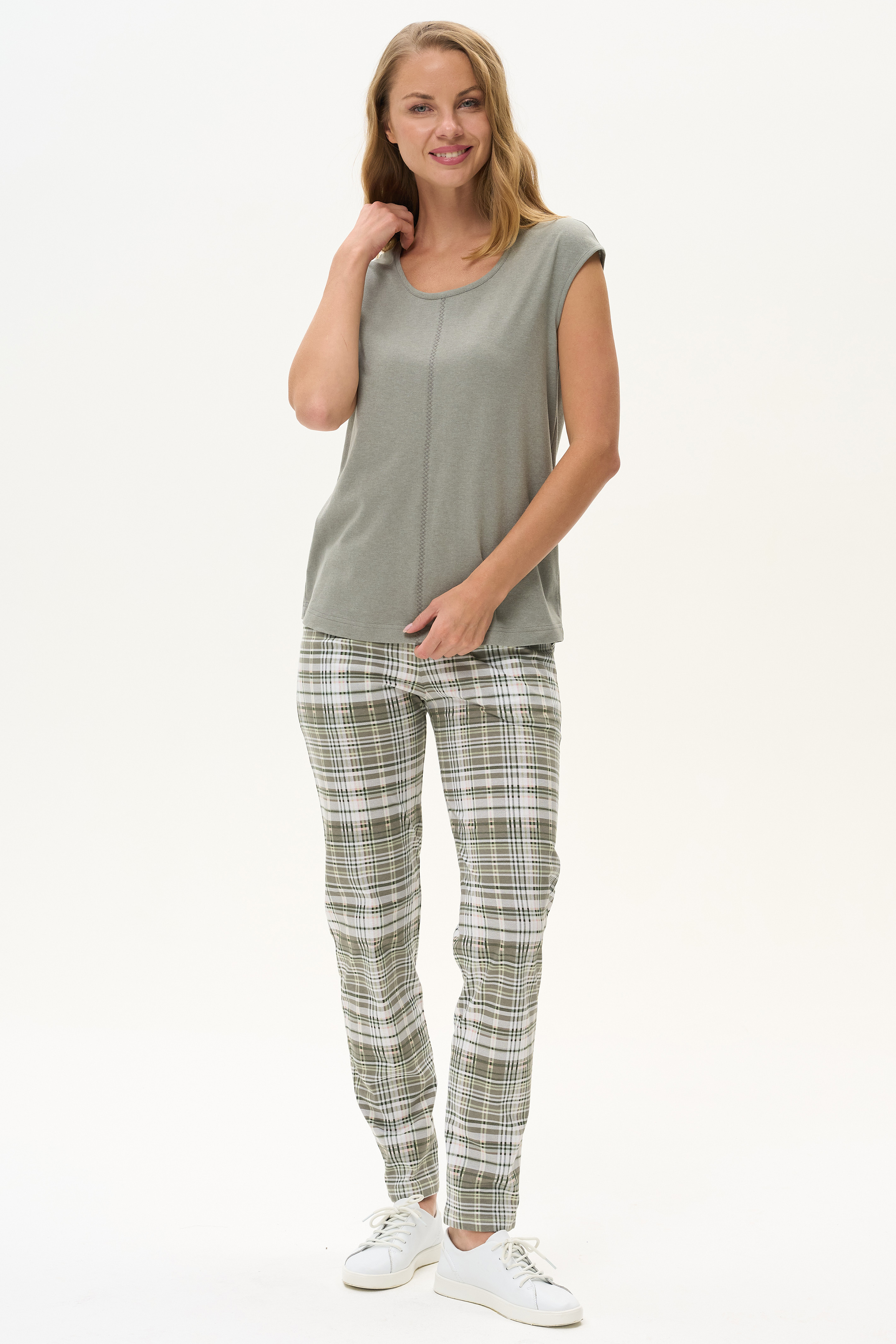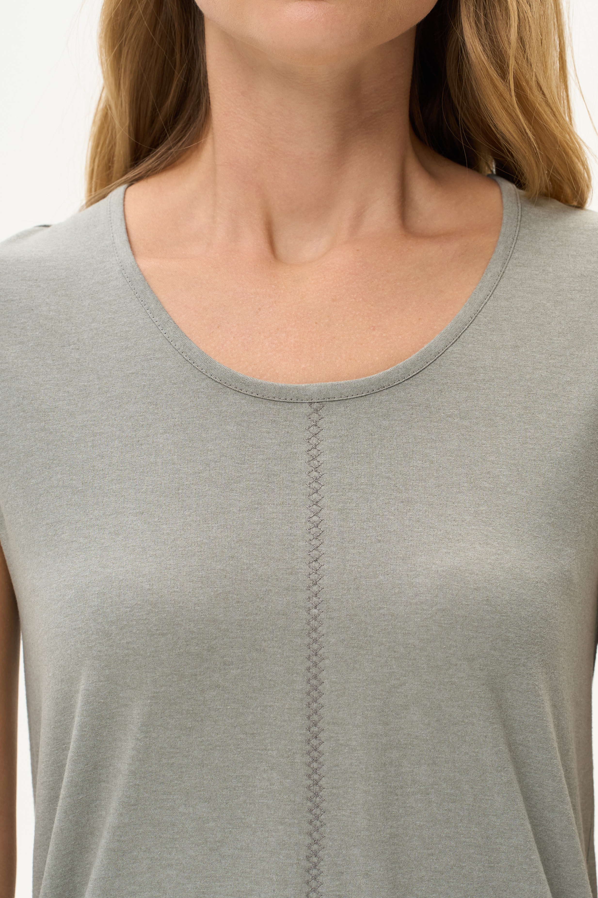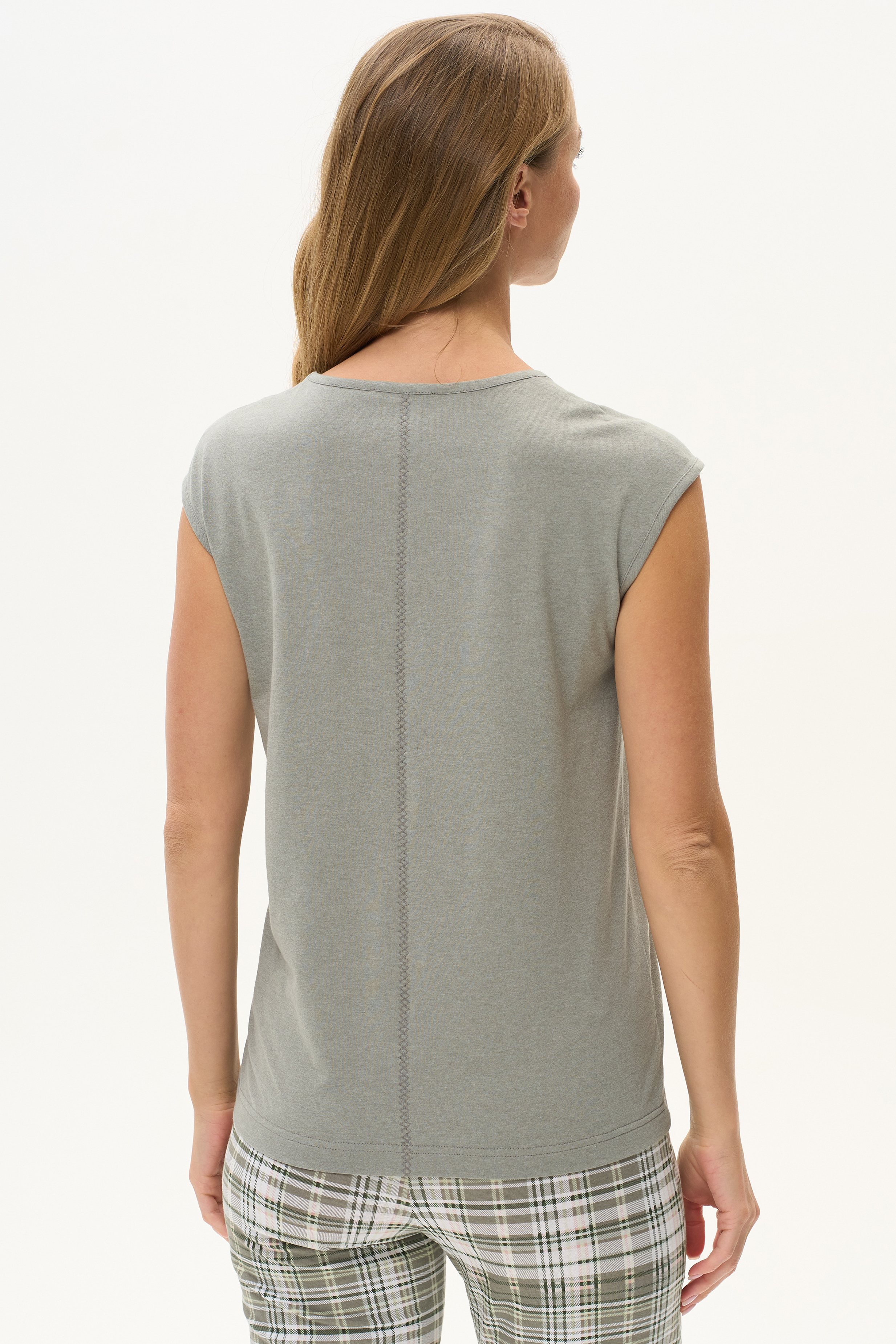 70% хлопок, 30% полиэстер Футболка выполнена из хлопкового меланжевого трикотажного полотна. Средние швы полочки и спинки декорированы мережкой. Модель с круглой горловиной и цельнокроеным коротким рукавом. Рост модели на фото 178см.