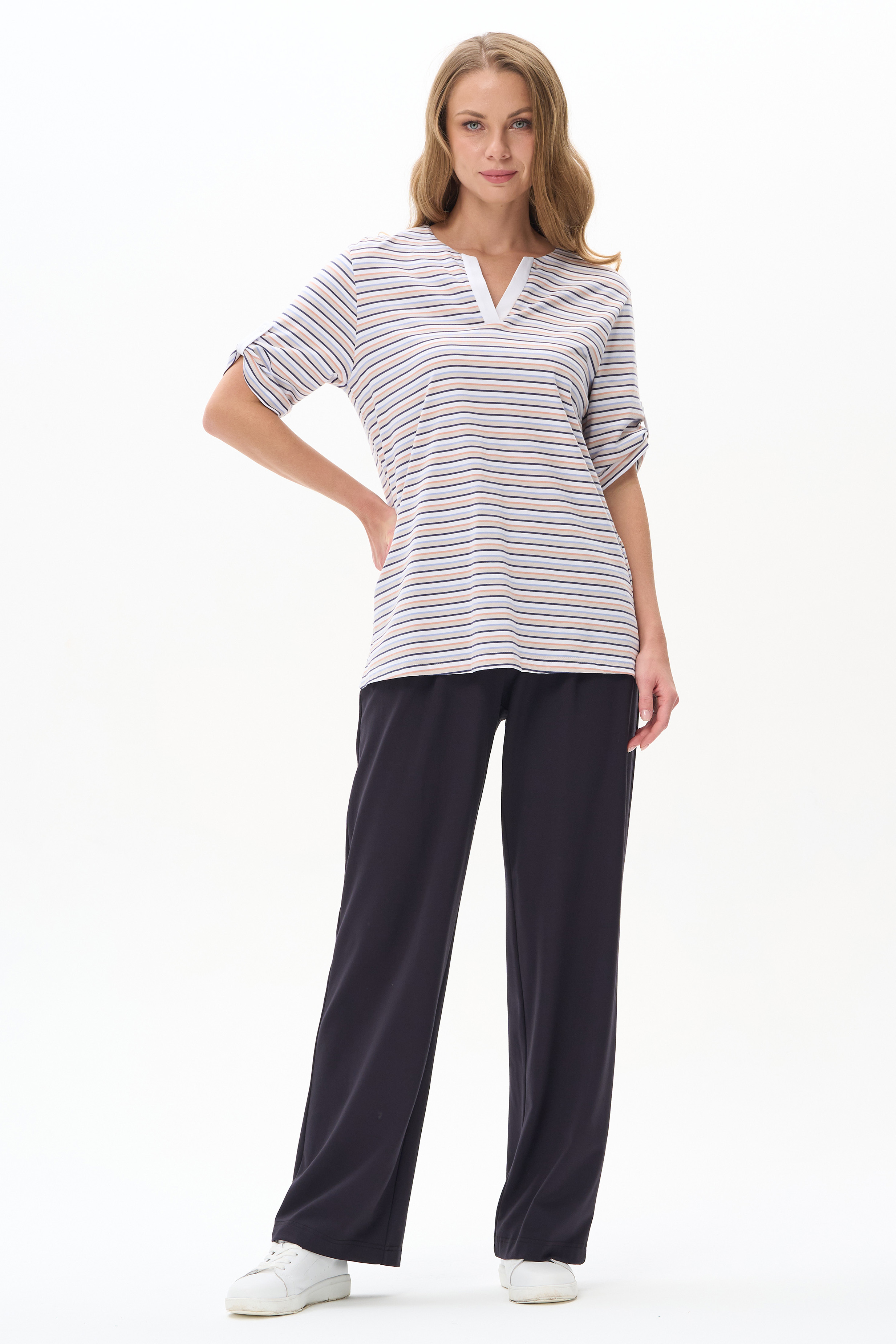 100% хлопок Футболка из хлопкового трикотажного полотна с разрезами по бокам. Втачной рукав с патой. Рост модели 175 см.