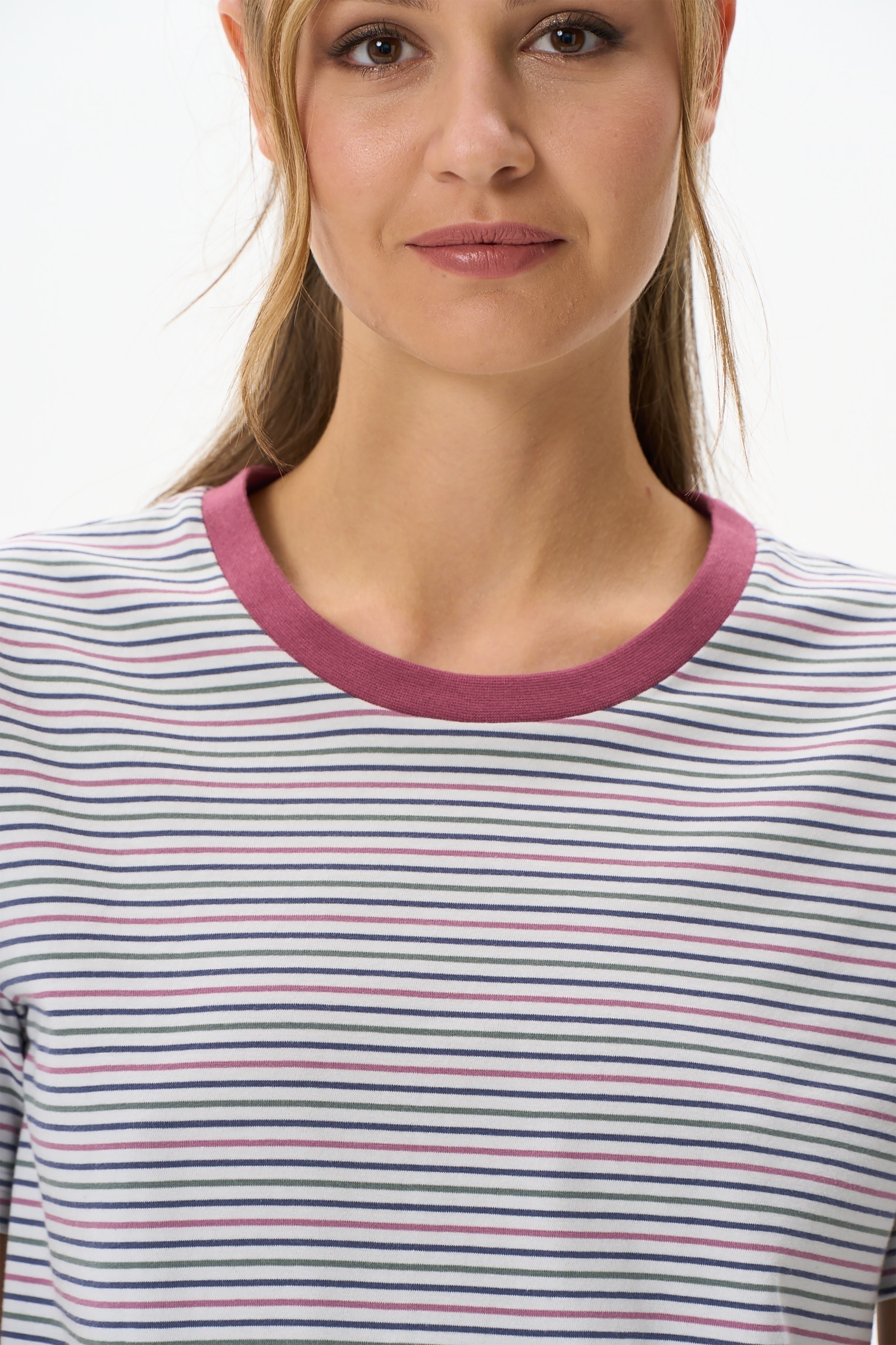 Футболка модного кроя - свободная и чуть укороченная, до середины бёдер. Выполнена из хлопкового вязанного трикотажного полотна с эластаном. Свободный втачной рукав гармонизирует общий стиль. Круглый вырез горловины обработан хлопковым полотном рибана. Рост модели на фото 177см