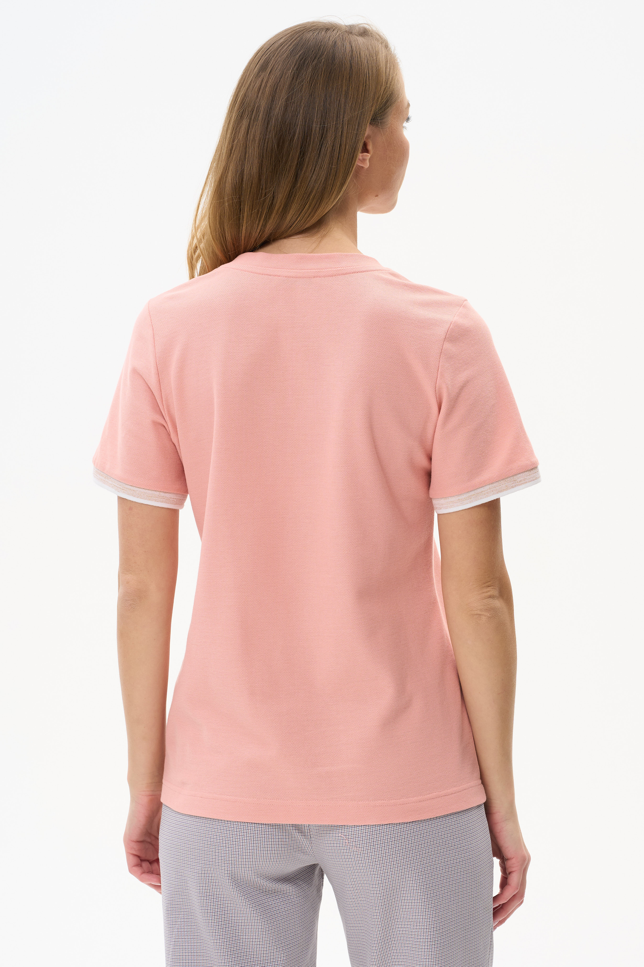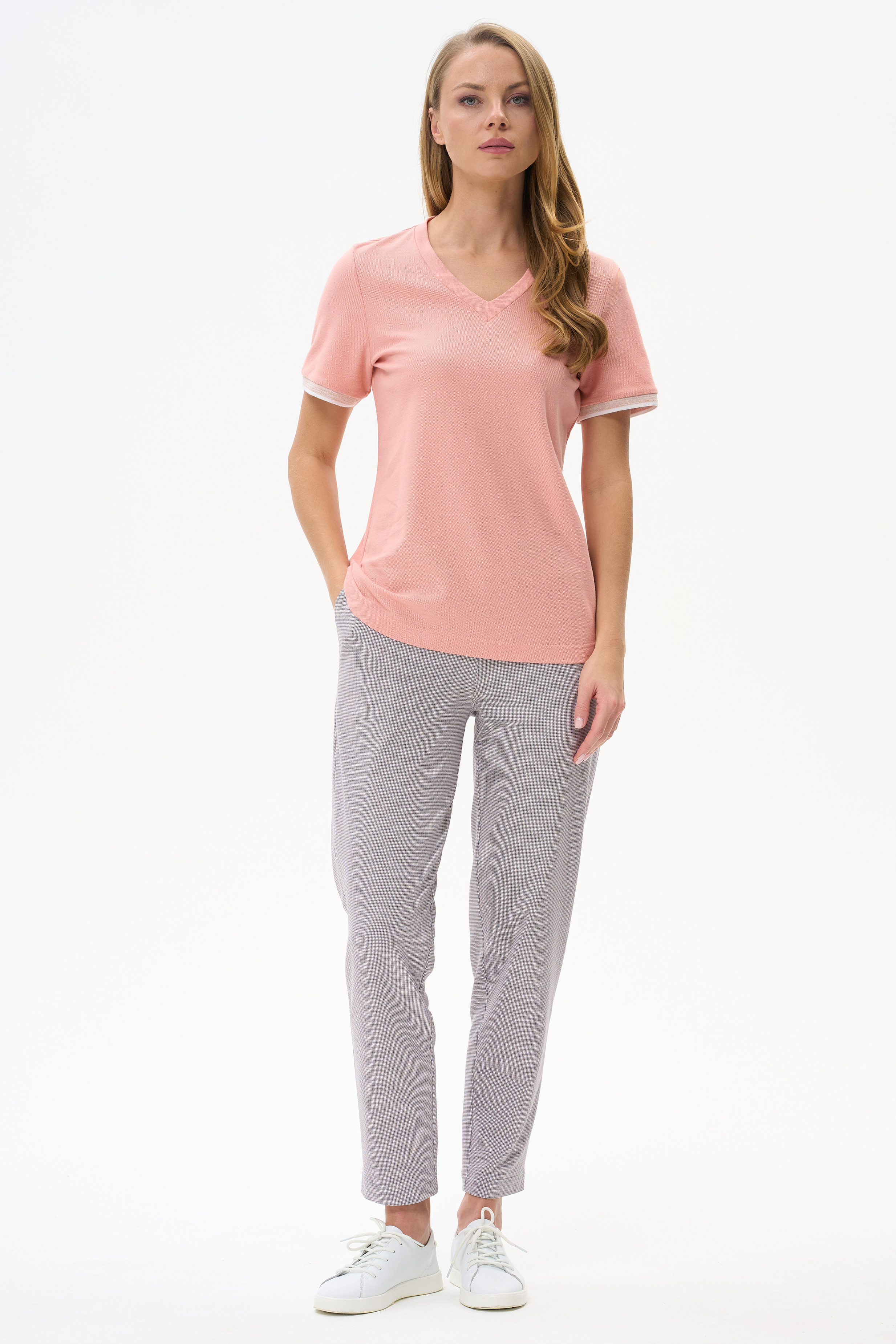 100% хлопок Футболка выполнена из хлопкового полотна - пике. V-образный вырез горловины, короткие рукава. Рост модели на фото 177см