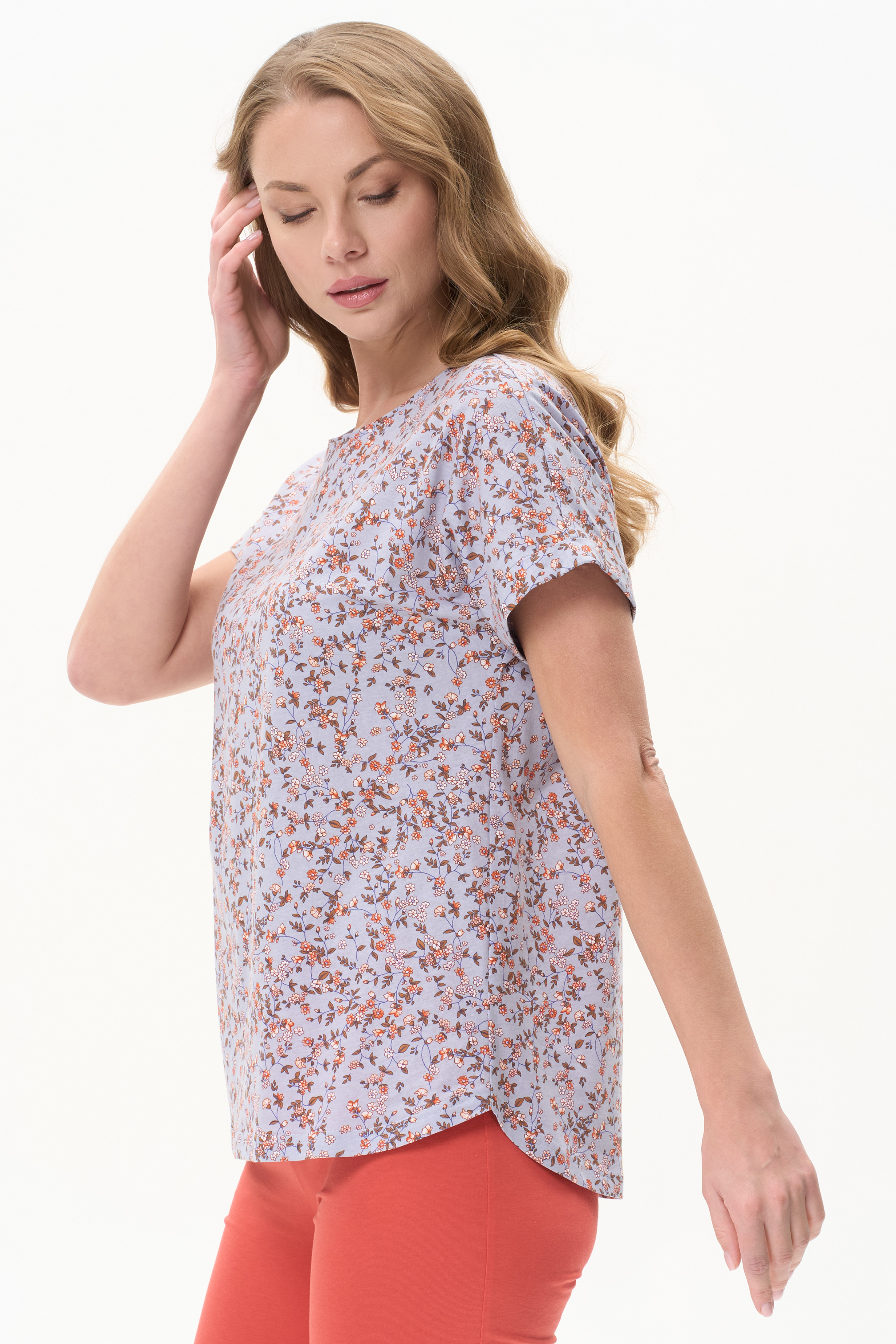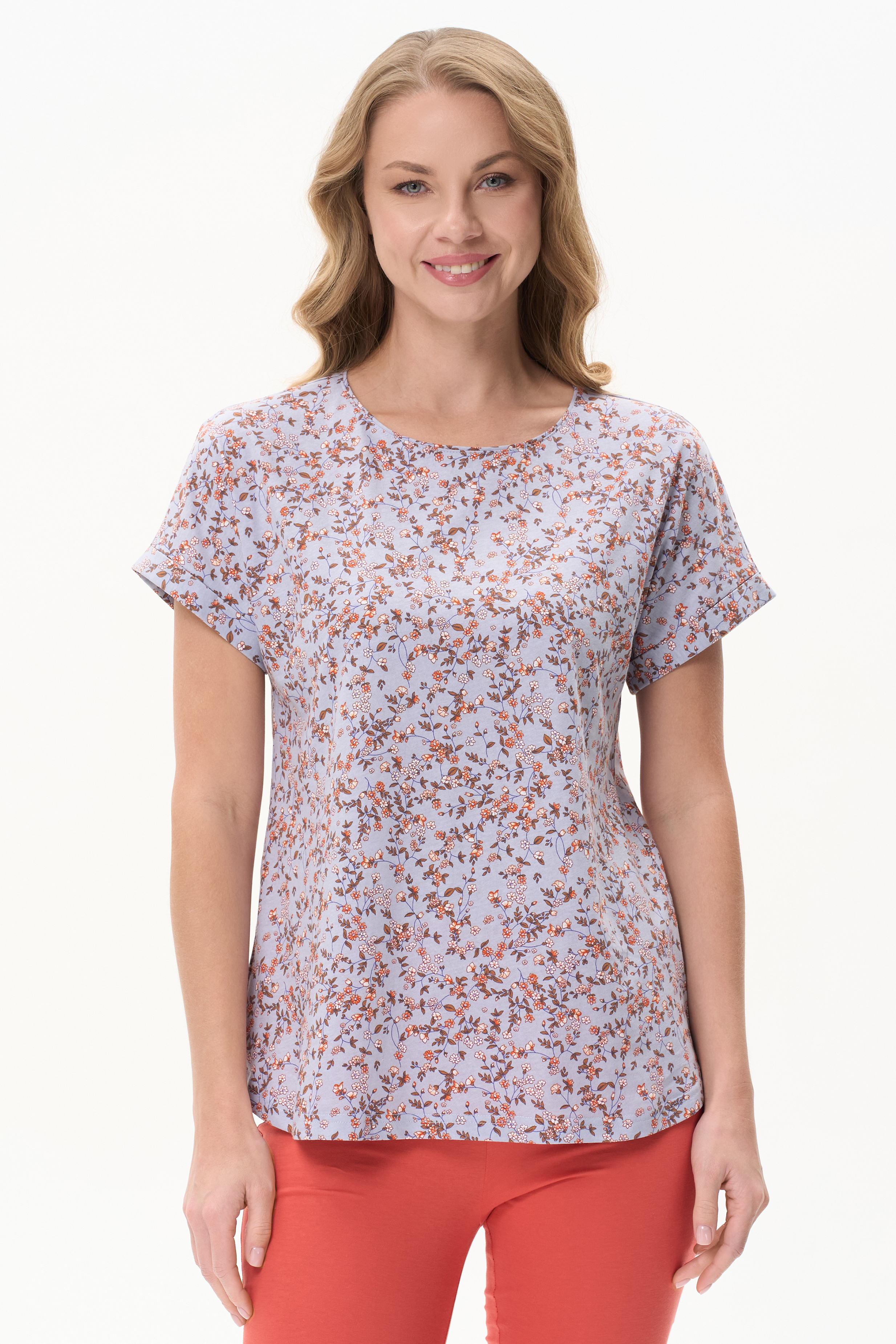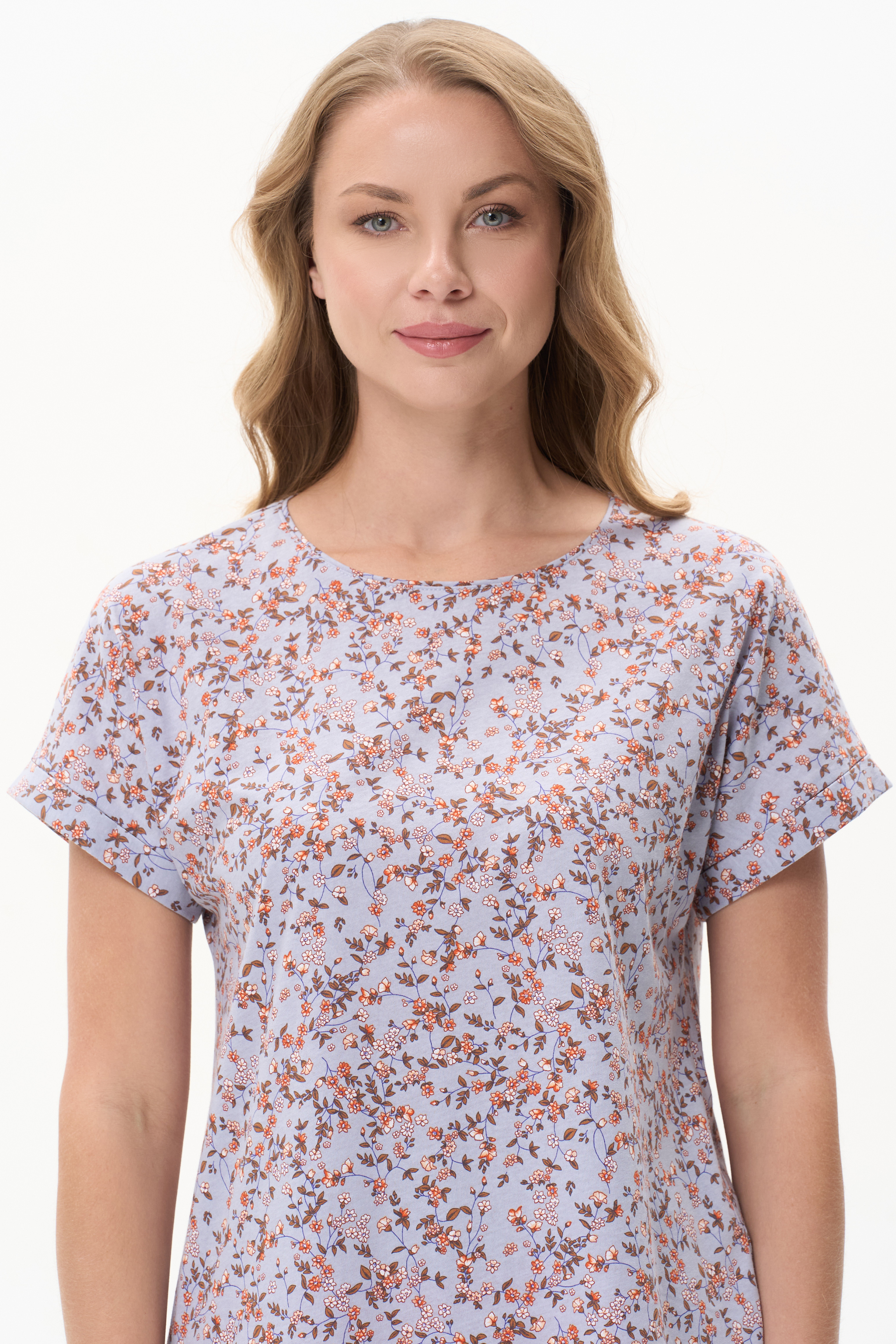 100% хлопок Футболка из кулирки качества ПЕ 145 гр. Модель свободная с круглым вырезом горловины, цельнокроеными короткими рукавами с зафиксированным подворотом, фигурная линия низа. Удобная повседневная модель. Рост модели 175 см.