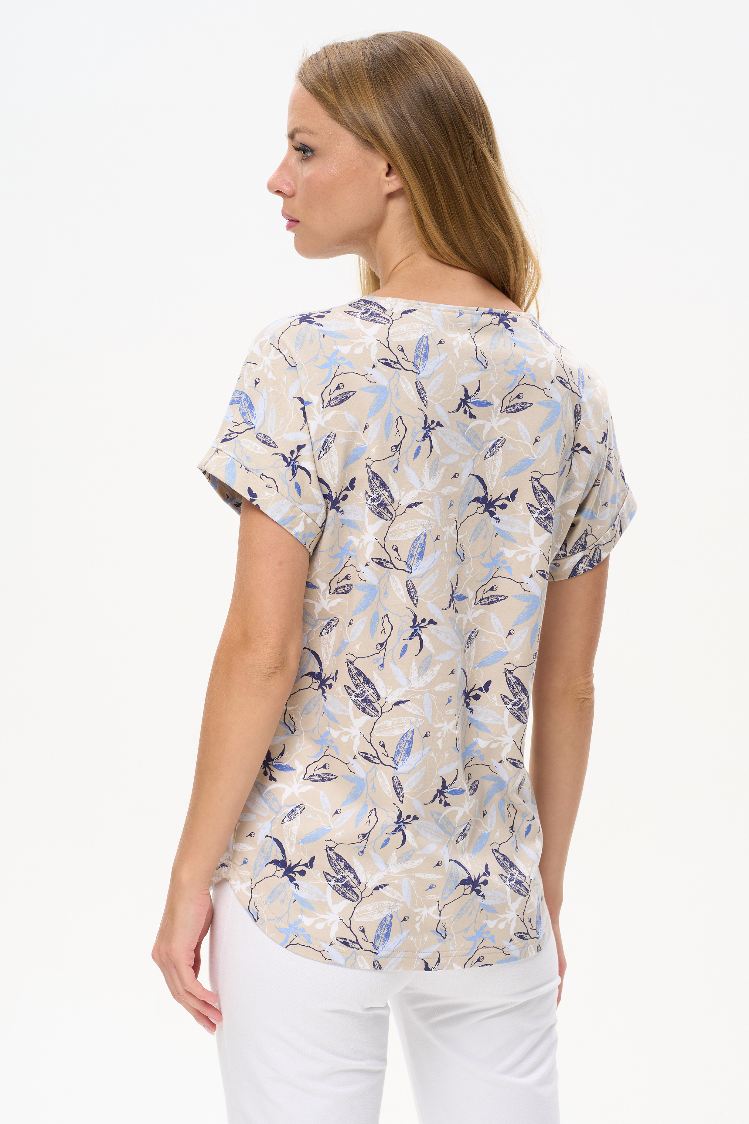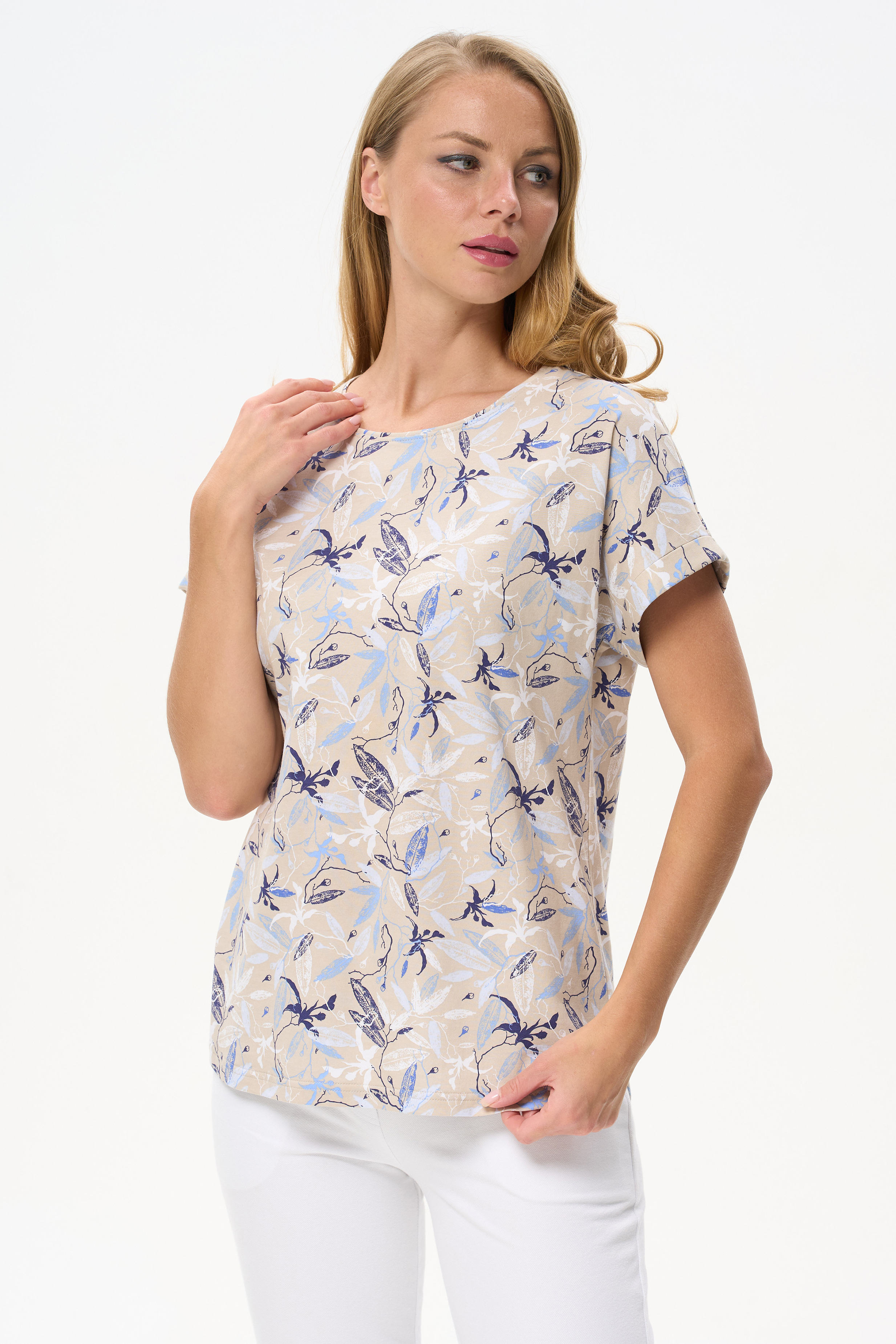 100% хлопок Футболка из хлопкового полотна. Круглый вырез горловины, цельнокроеные короткие рукава с отворотами, фигурная линия низа. Рост модели 175.