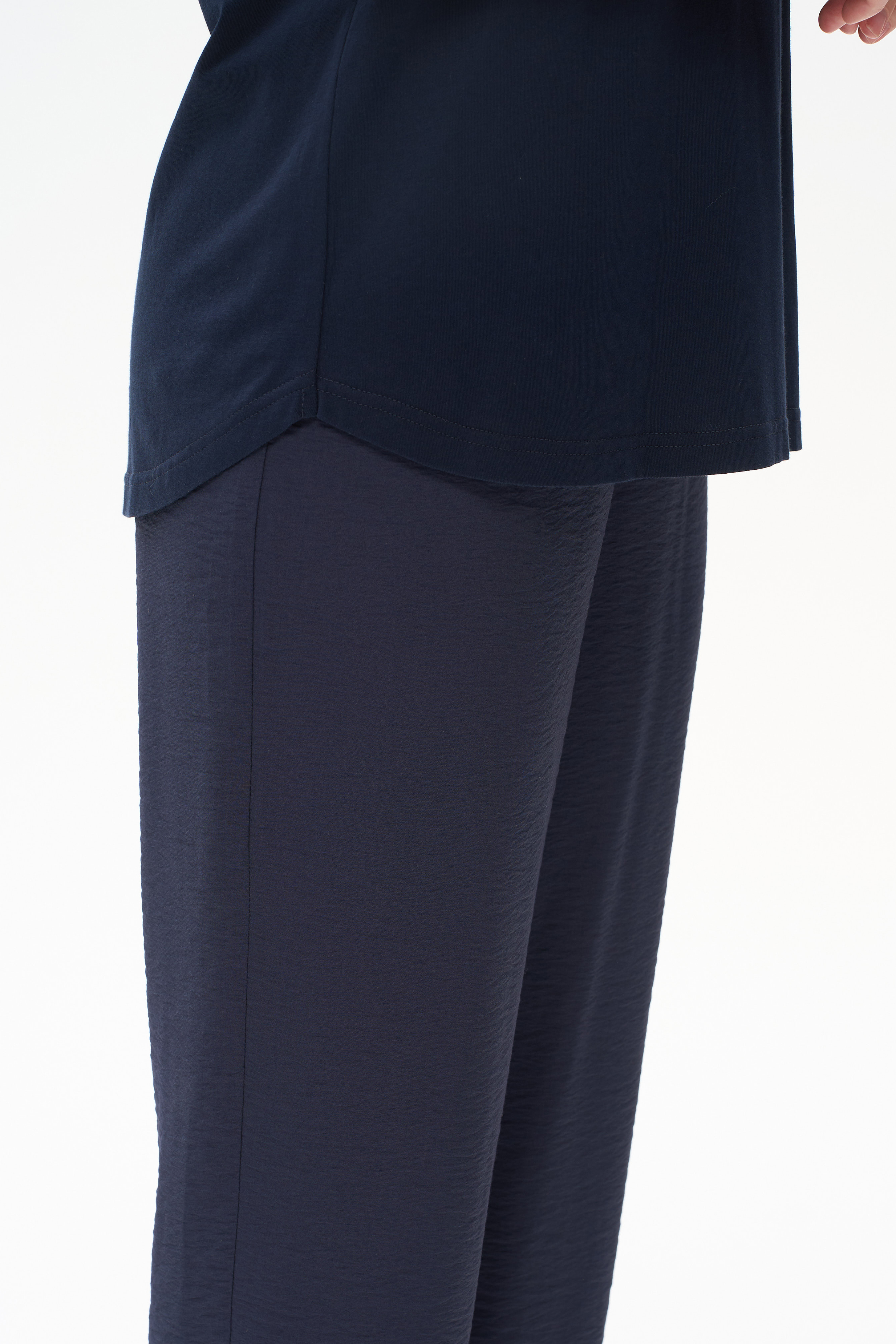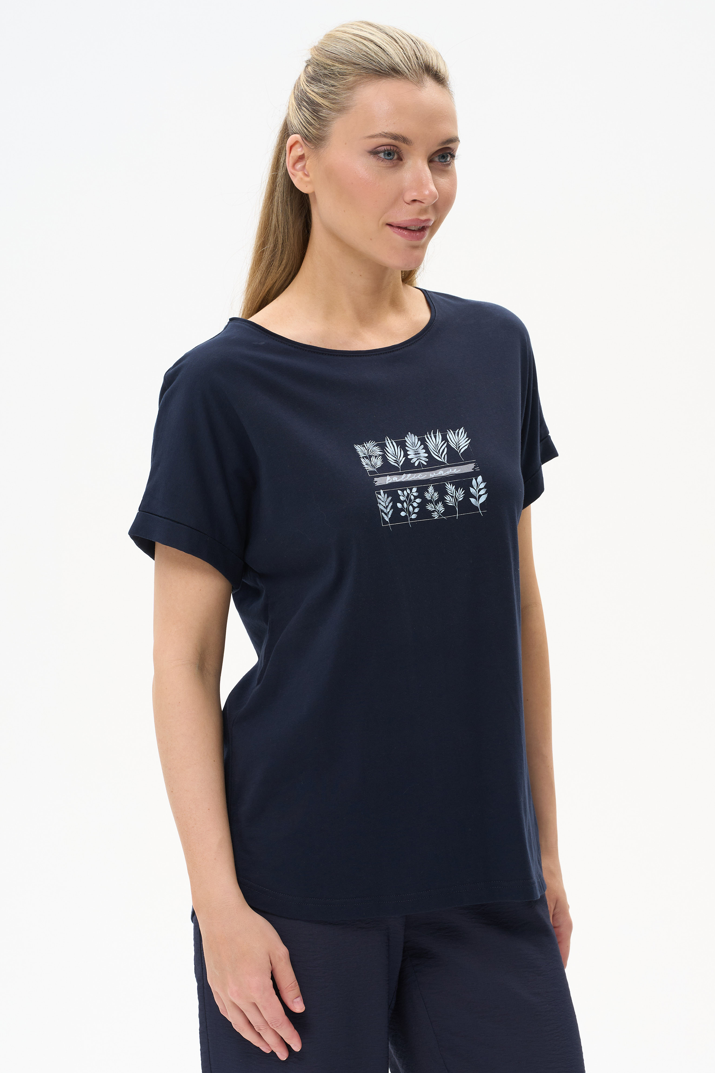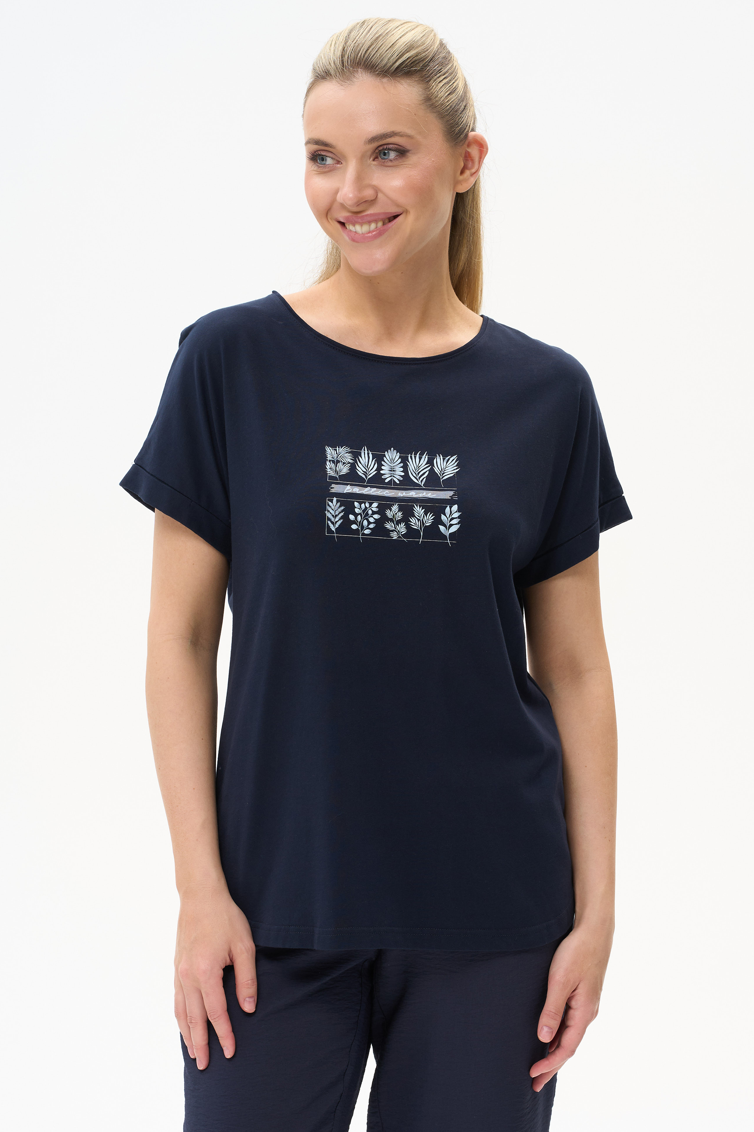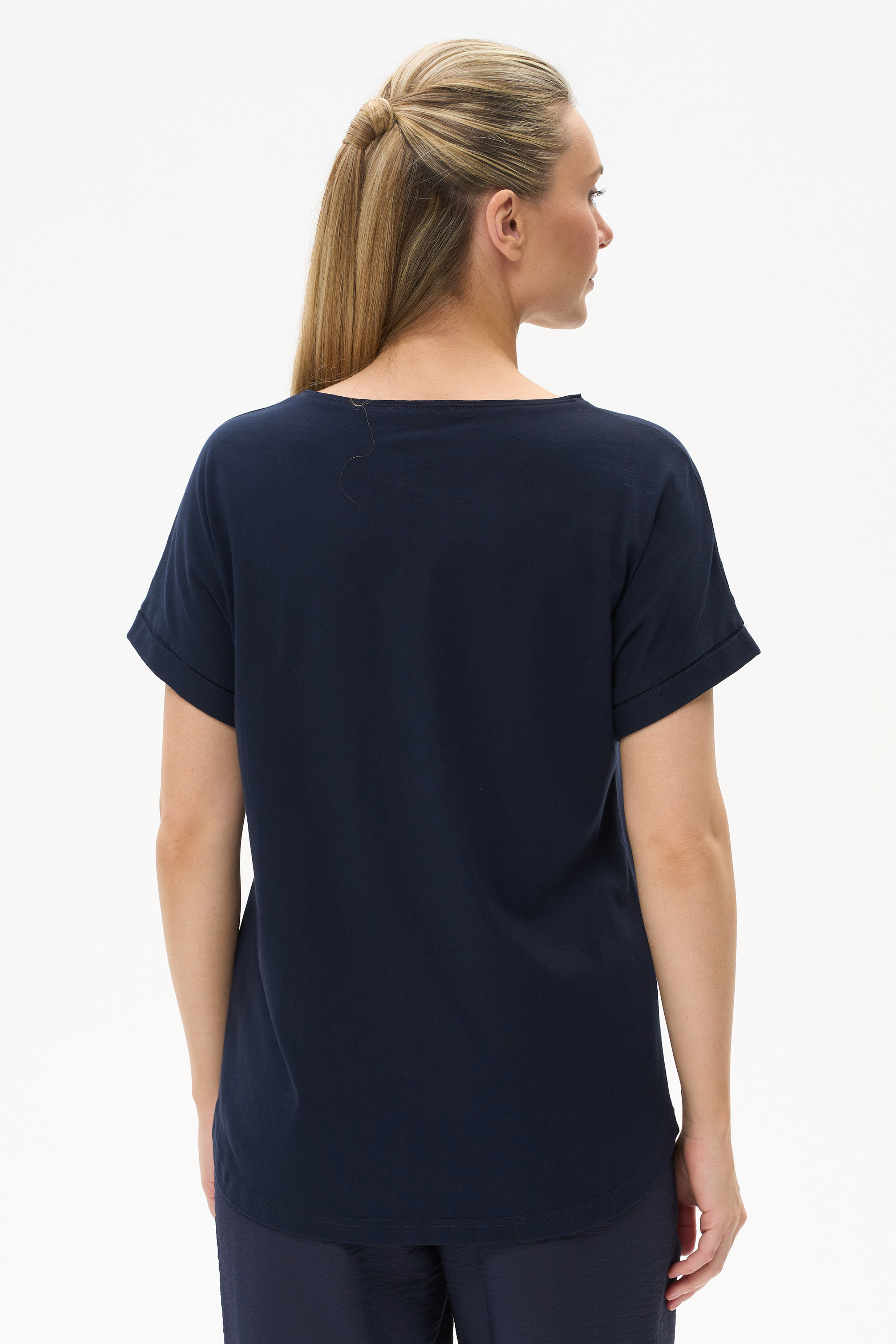 100% хлопок Футболка из хлопкового полотна. Круглый вырез горловины, цельнокроеные короткие рукава с отворотами, фигурная линия низа. Рост модели 175.