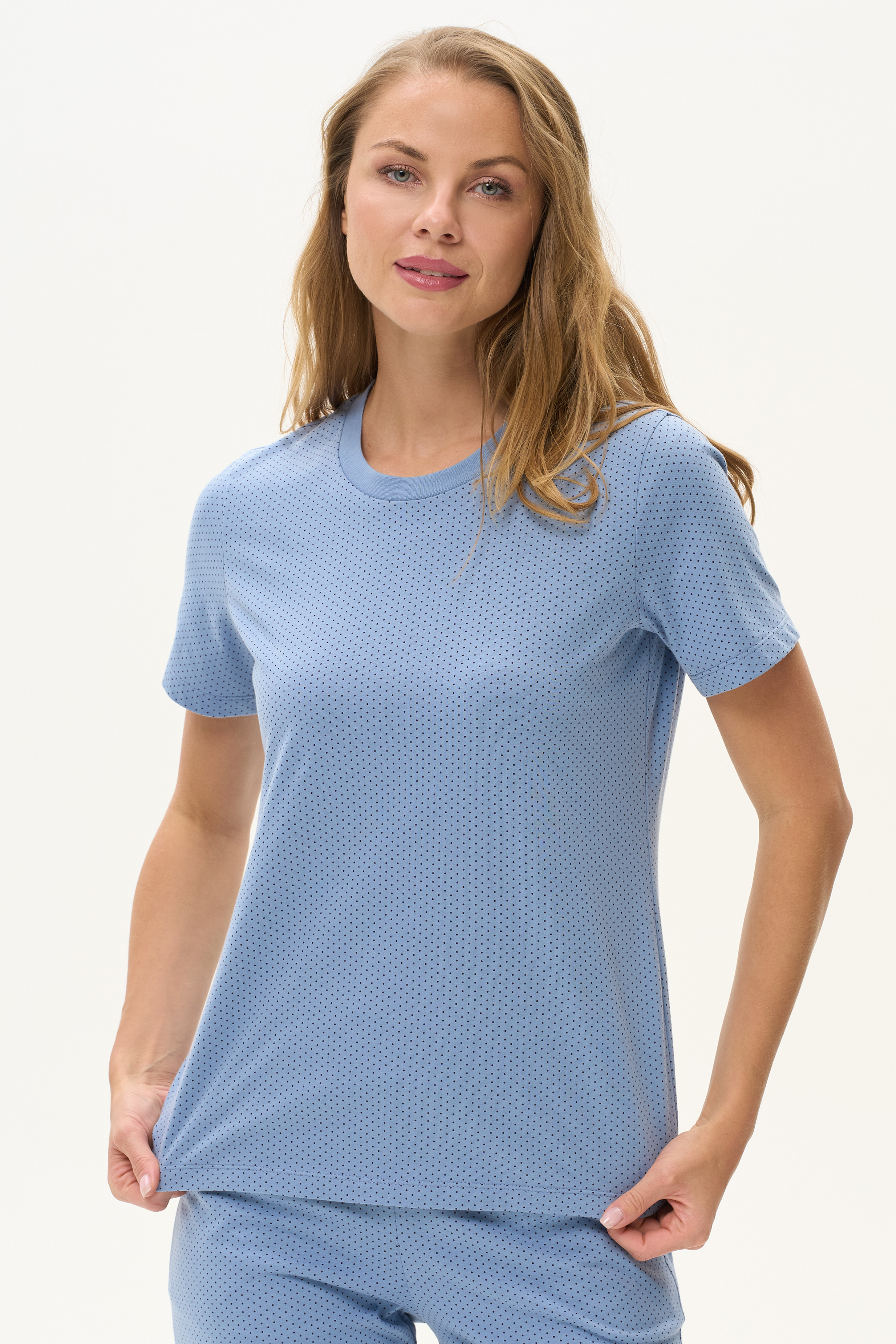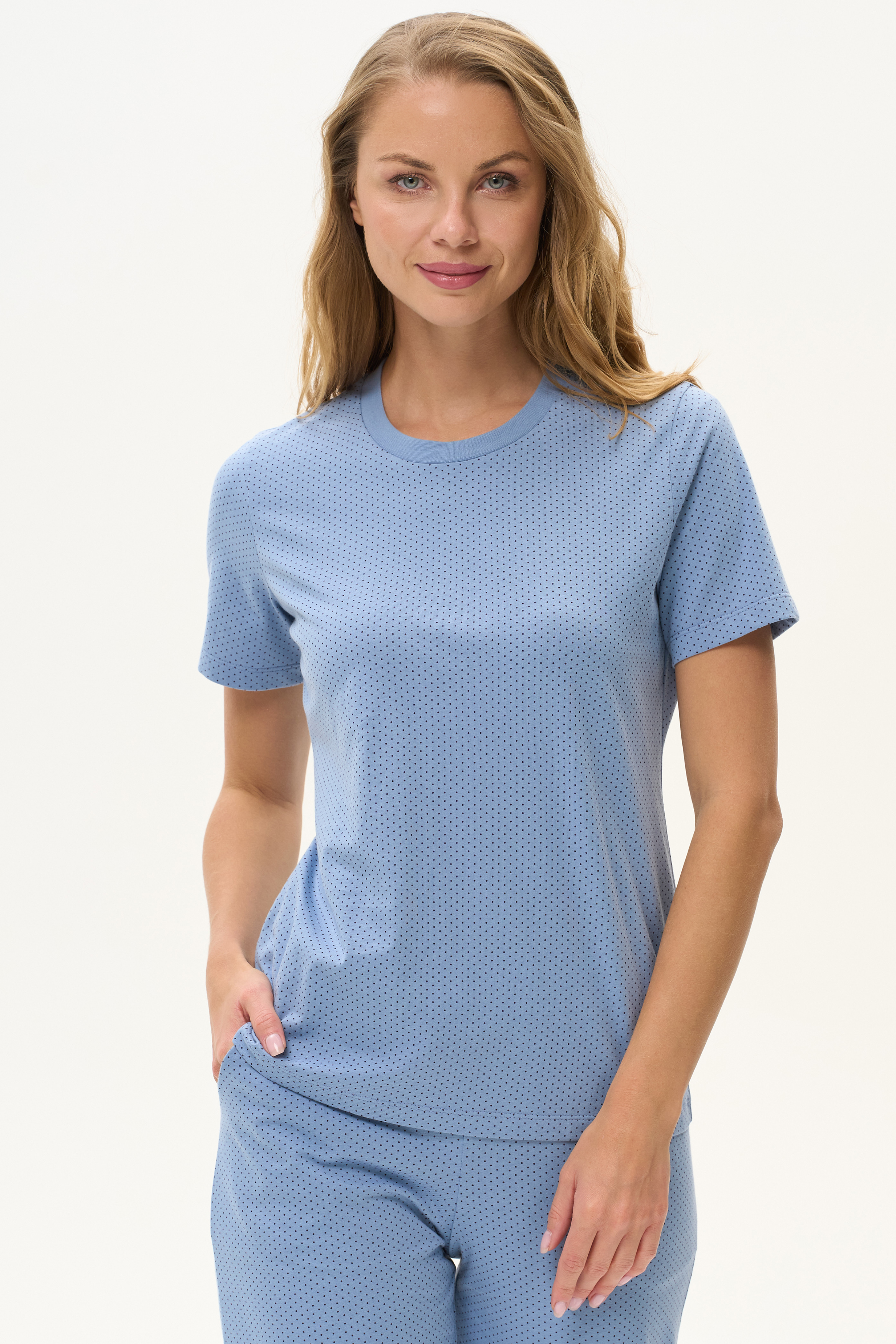 100% хлопок Футболка модного кроя из хлопкового трикотажного полотна. Свободный силуэт, длина до середины бёдер, втачные рукава. Круглый вырез горловины обработан хлопковым полотном рибана. Рост модели 175 см.