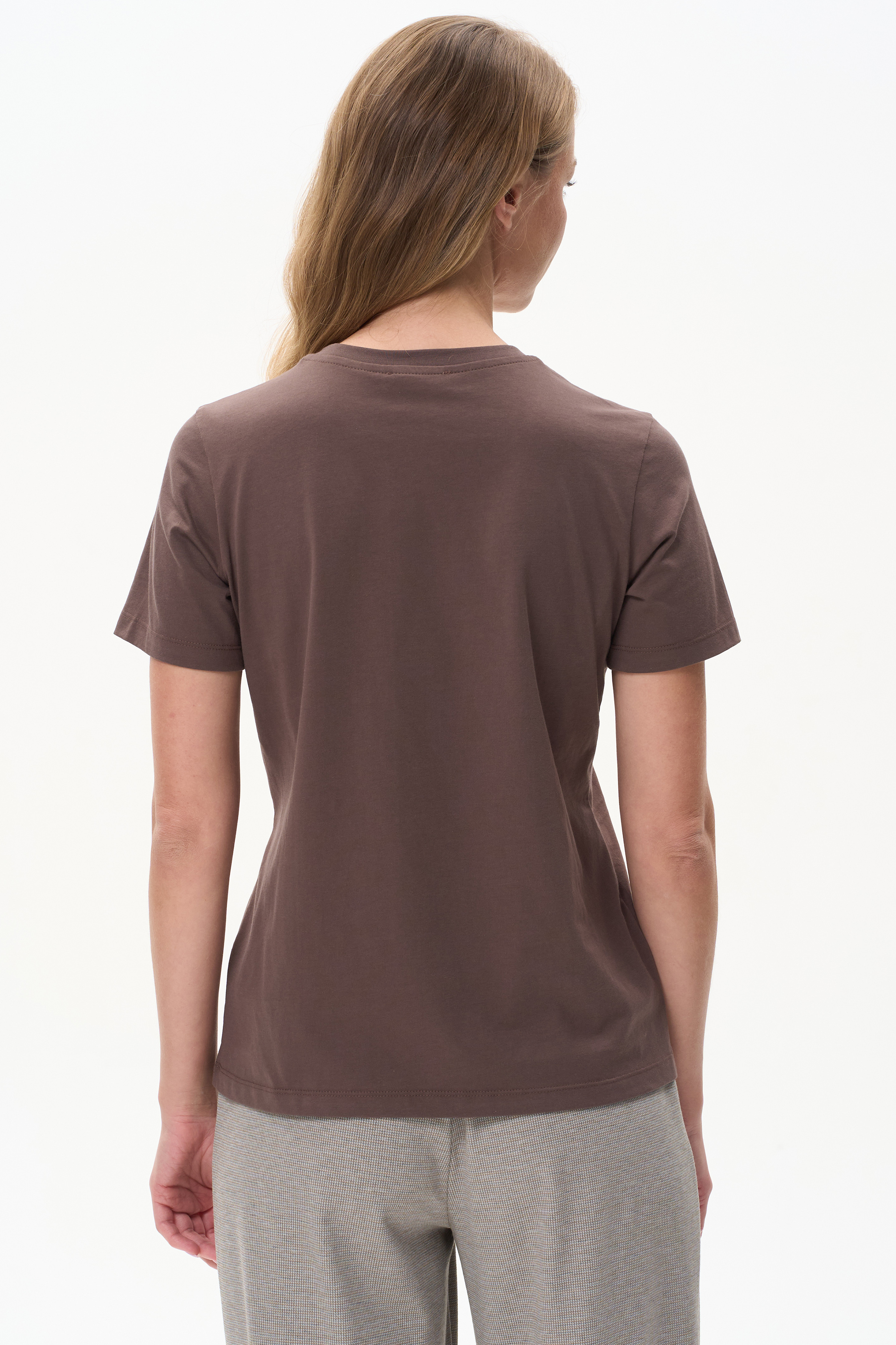 Футболка модного кроя из хлопкового трикотажного полотна. Свободный силуэт, длина до середины бёдер, втачные рукава. Круглый вырез горловины обработан хлопковым полотном рибана. Рост модели 175 см.