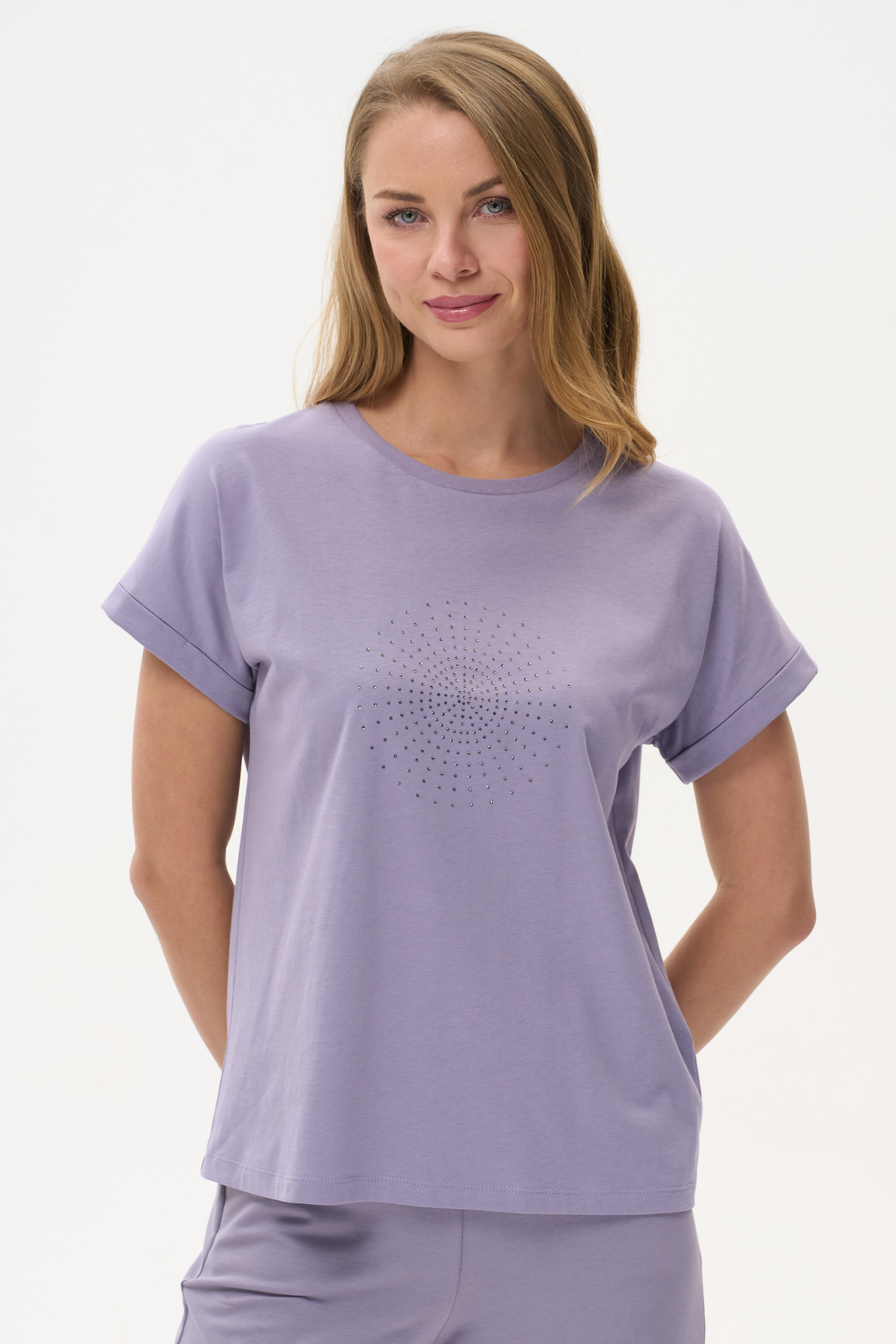 100% хлопок Футболка из хлопкового полотна качества пенье 150 гр. Модель с круглым вырезом горловины и цельнокроеными короткими рукавами с подворотом. Рост модели 175 см.